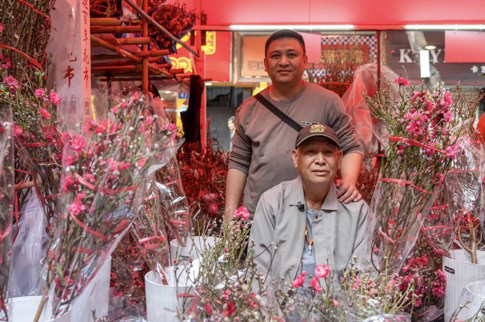 除夕这一天,读小学六年级的孙女也站在档口前了。收钱、招呼客人,偶尔学着爷爷的样子喊一声“桃花很靓啊,还是花王”。每每看着侄女,何东就会想起自己小时候。