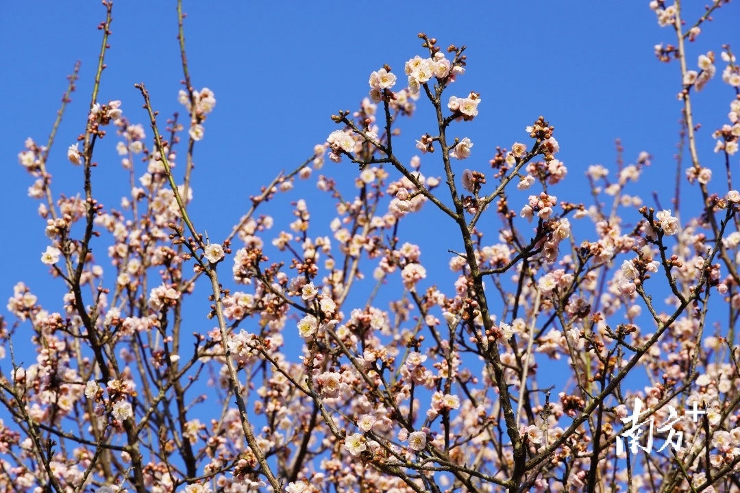 近日,黄埔区萝岗香雪公园迎来浪漫时节,宫粉梅正值盛花期,满树繁花如云似霞,将园区装点成一片梦幻的粉色童话世界。