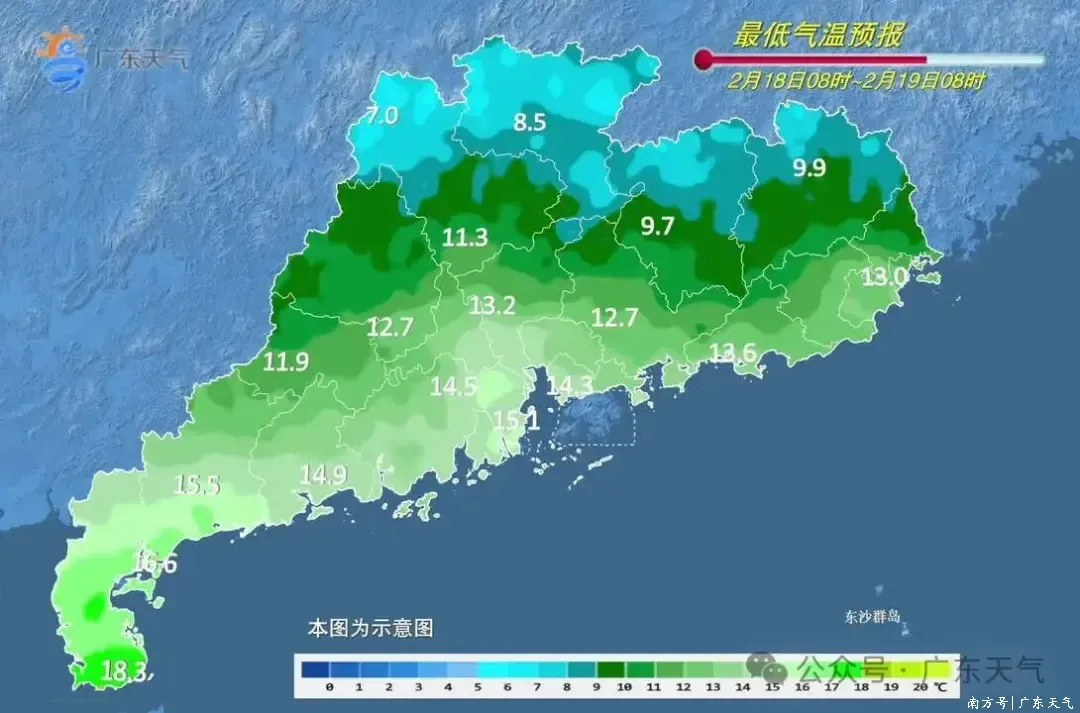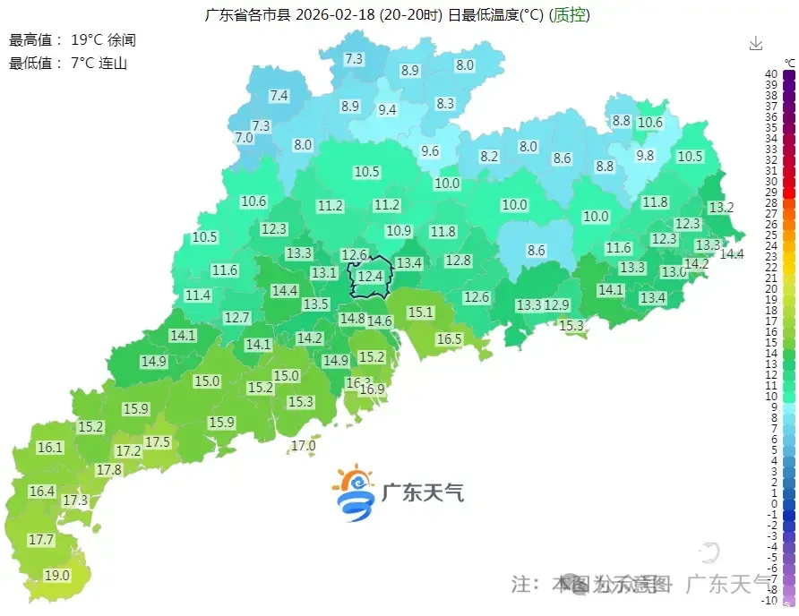 18日早晨最低气温:粤北市县7~10℃,粤西和珠江三角洲南部市县15~19℃,其余市县10~14℃,其中清远连山录得全省最低气温7.0℃。