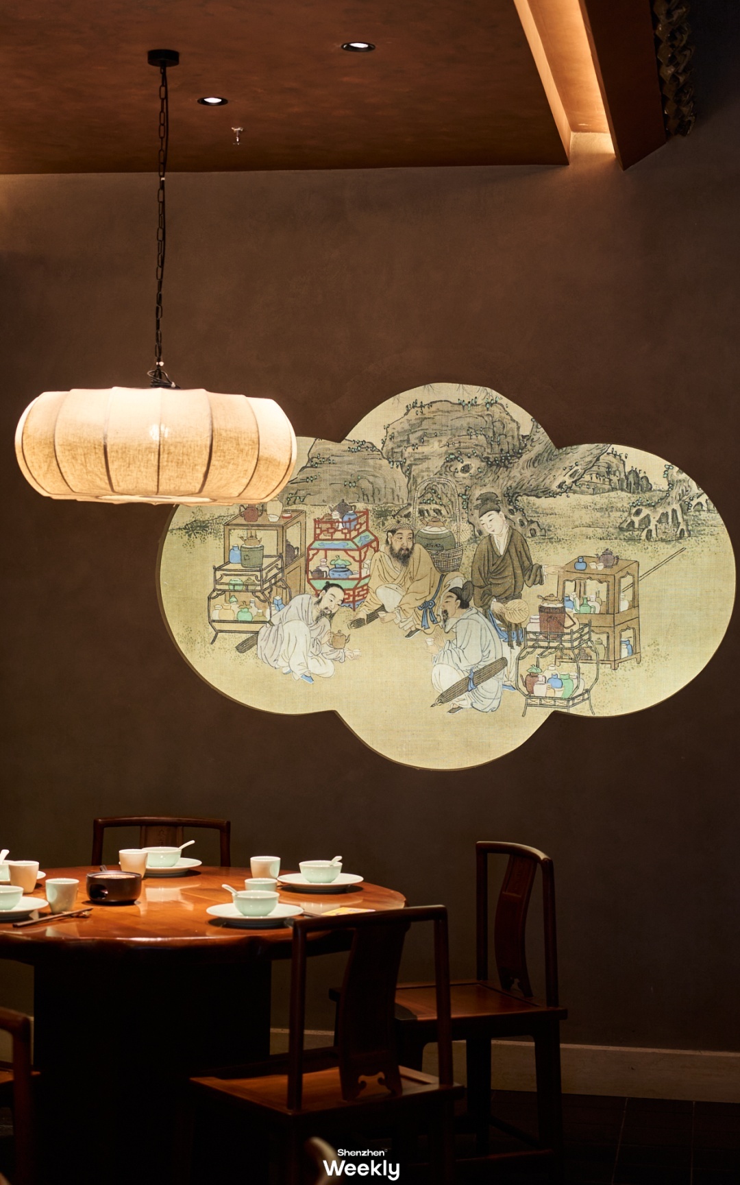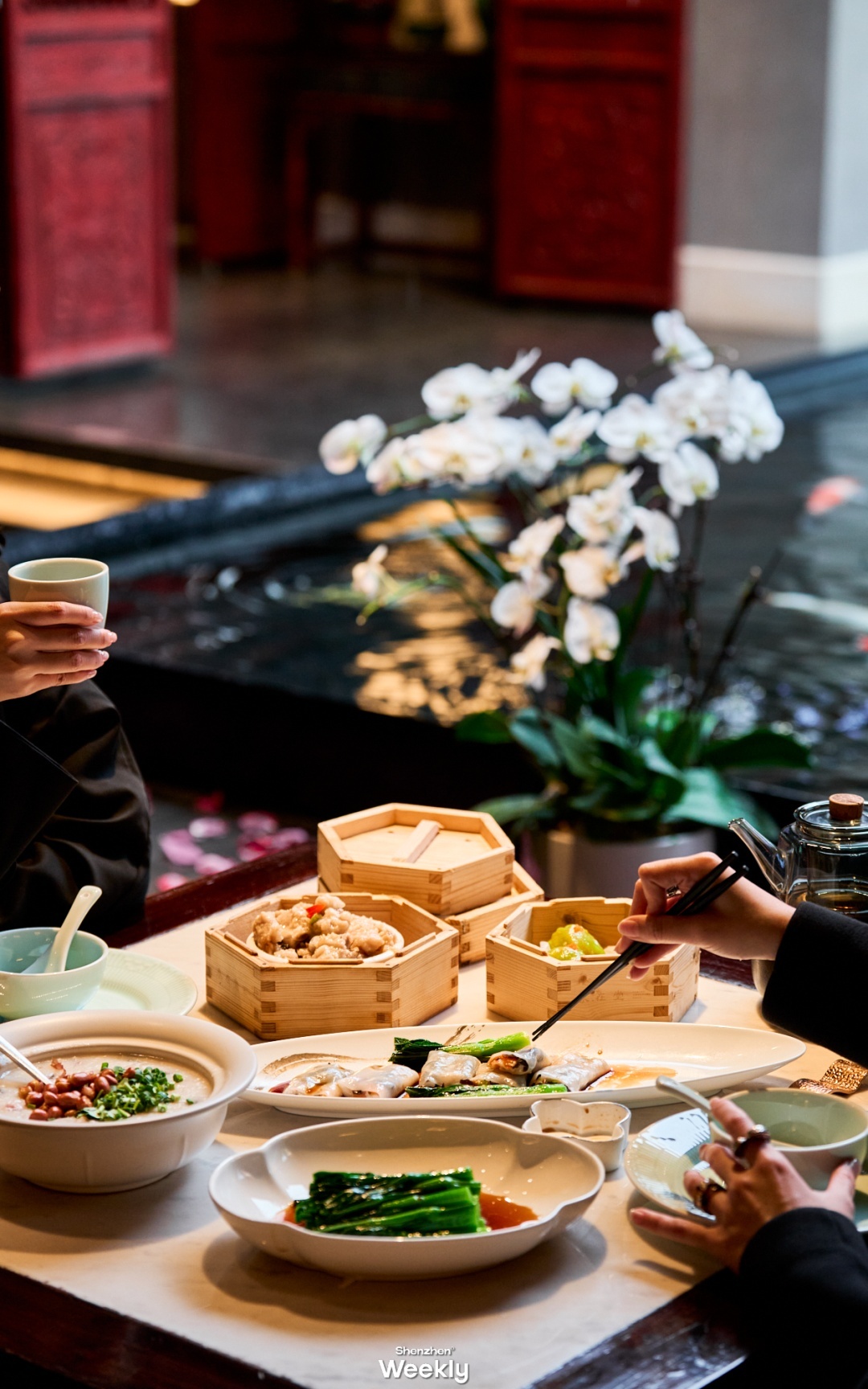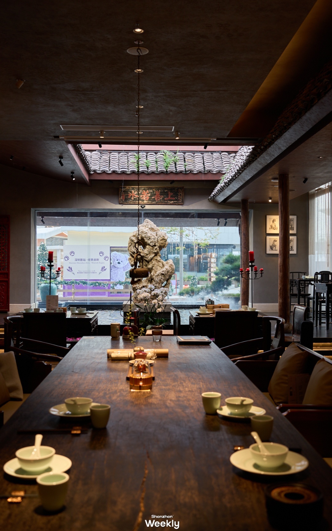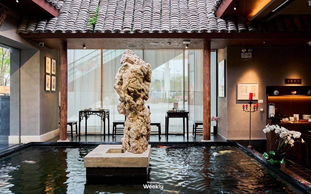 太子湾花园城VILLA还藏着一处静谧的东方院落——春在堂。整体空间以中式美学为主,踏入店内,粉墙黛瓦与古木温润相映,中庭一池静水潺潺,环境安静雅致而富有禅意。