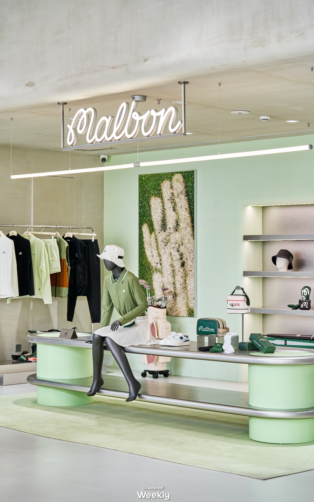 ◎高尔夫生活方式品牌Malbon中国总部,其双层“绿意”设计,重塑高尔夫生活:一楼是涵盖装备与模拟果岭的沉浸零售,二楼是可赏街景的主题咖啡厅,更有定期艺术展,让运动融入日常。