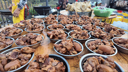 年会上硬菜满桌,犒劳园区上下辛苦一年的一线员工。