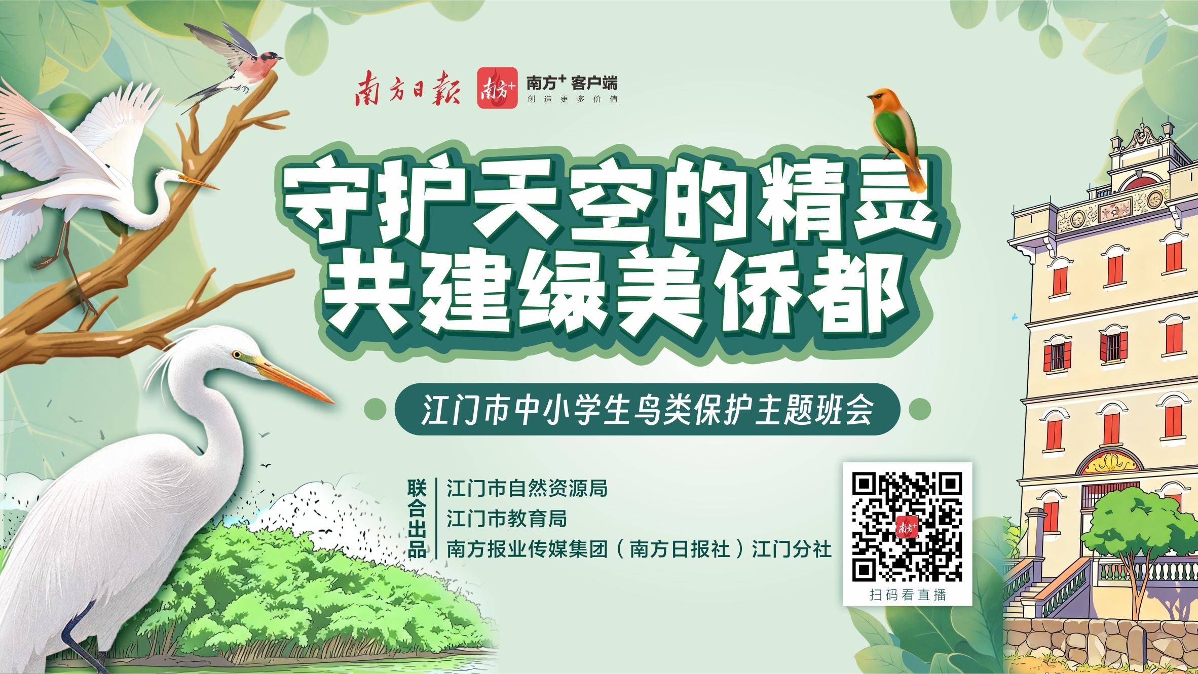 值此候鸟南飞越冬关键期,南方报业传媒集团(南方日报社)江门分社联合江门市自然资源局、江门市教育局策划推出“守护天空的精灵,共建绿美侨都——江门市中小学生鸟类保护主题班会”(网课),邀请北京飞羽团队成员、中山大学生态学博士生梁智健(Toto)走进江门小鸟天堂国家湿地公园,以生动的故事案例分享,将本土生态保护实践转化为教育资源,系统科普介绍江门地区鸟类的生态特征、生存现状及保护措施,通过“小手拉大手”形式,面向社会公众科普候鸟知识、阐释保护法律法规、传递生态文明理念,凝聚广泛共识,在全社会形成爱护鸟类、守护共同家园的良好风尚。