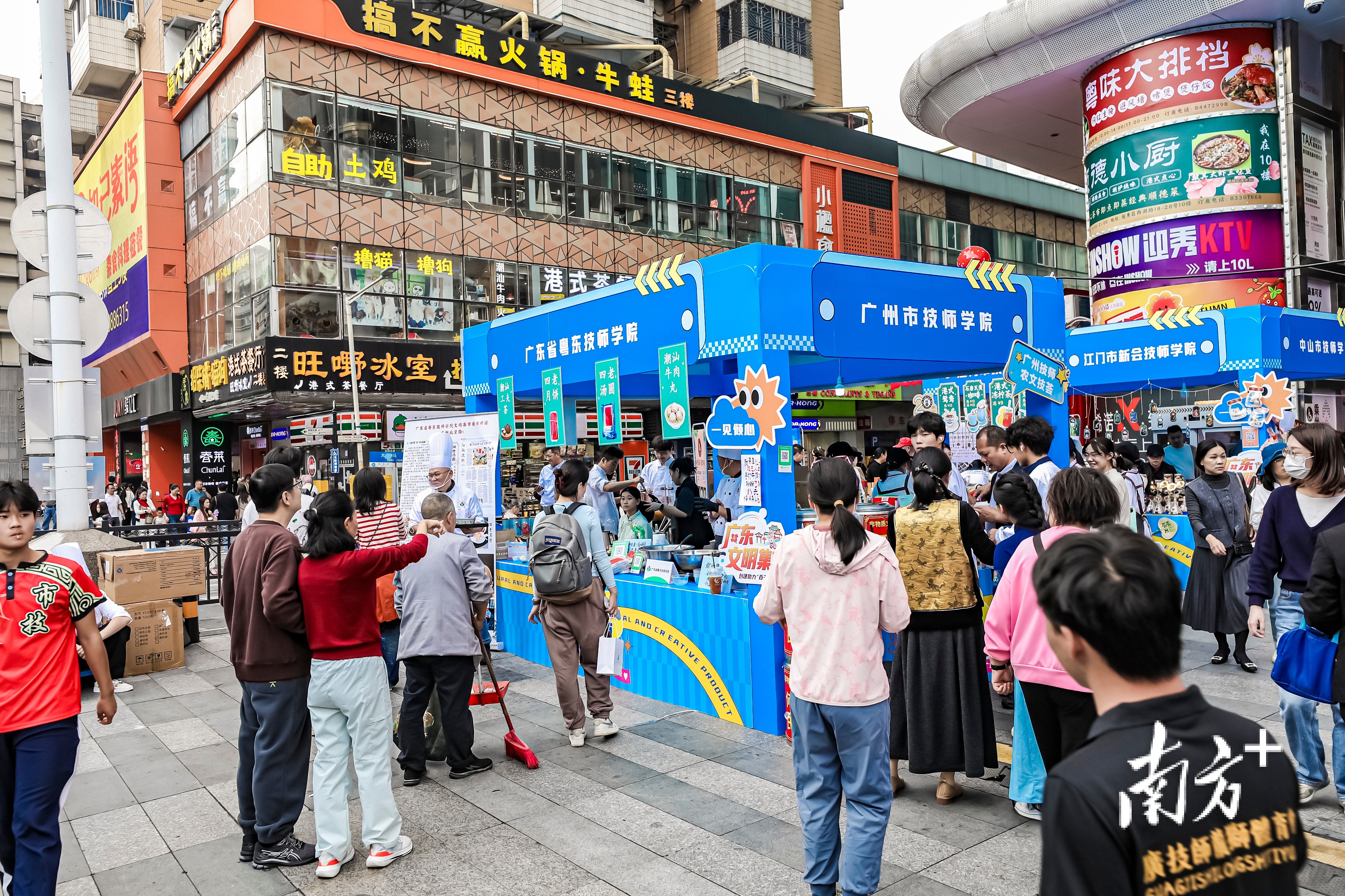 而在一旁,省人力资源社会保障厅与全省24所技工院校联袂打造的“匠心点亮生活,技能促进消费”广东省技工院校文明集市也正式启动,广大市民游客可以在此体验特色美食,感受南粤潮玩的创意。