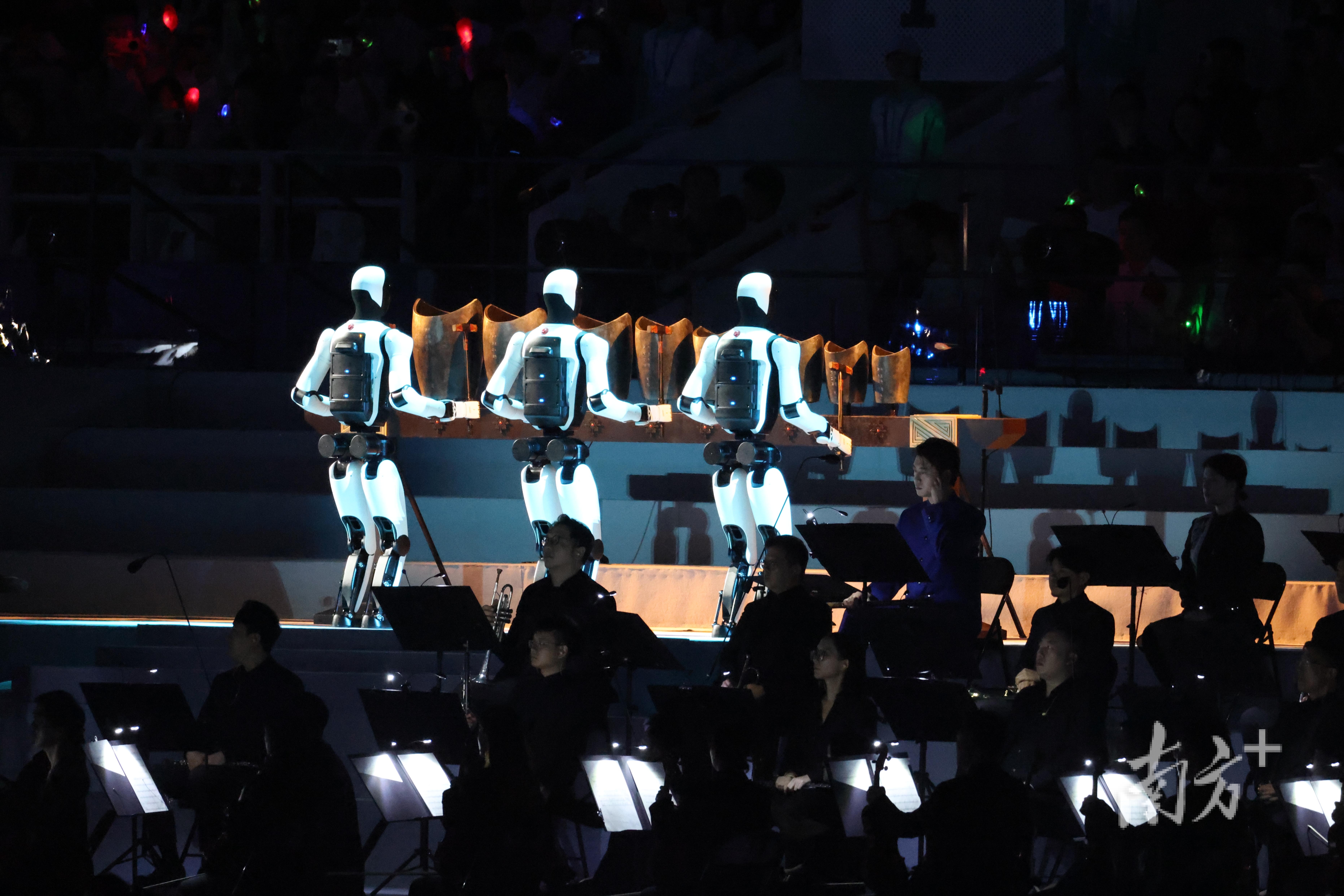 9日晚,随着机器人敲响铜句鑃仿制品,一段大湾区人熟悉的旋律拉开了十五运会开幕式演出的序幕。