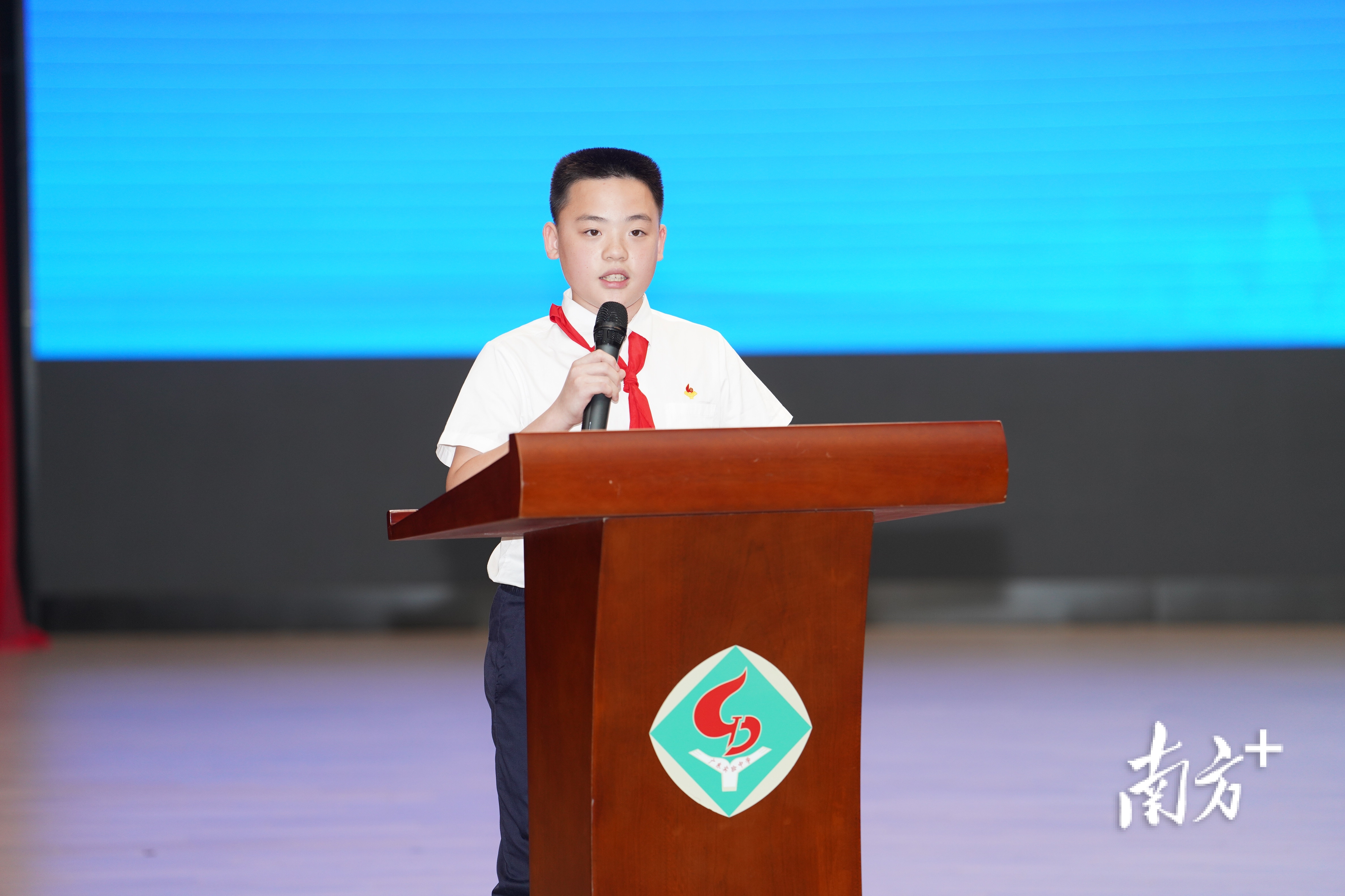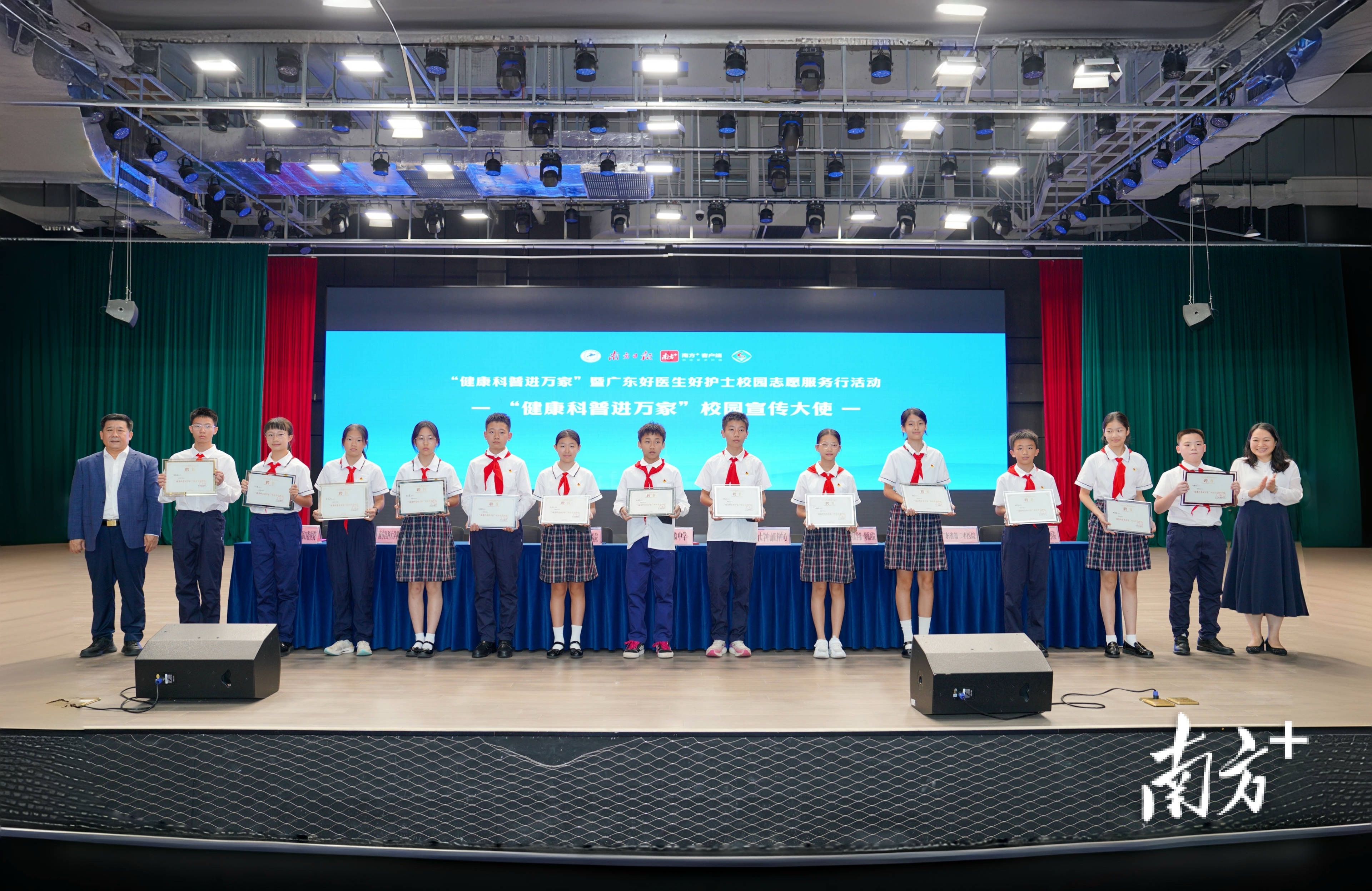 此外,省实25名学生受聘为“健康科普校园宣传大使”。省实白云校区初一学生何儒伯作为代表宣读倡议书,呼吁同学们“早上别赖床,一定要吃早餐”“课间远眺几分钟,给眼睛放个假”,从生活细节做起,践行健康生活方式。
