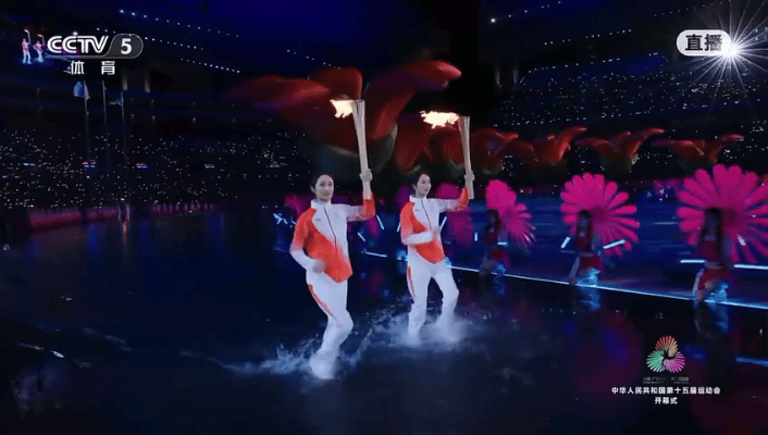 11月9日晚,在第十五届全国运动会开幕式上,第33届奥运会花样游泳集体和双人项目金牌得主、南山花游姐妹花王柳懿、王芊懿作为第四棒火炬手踏浪而来,在万众瞩目下完成了神圣的火炬接力。她们的身影成为运动场上青春活力的注脚。