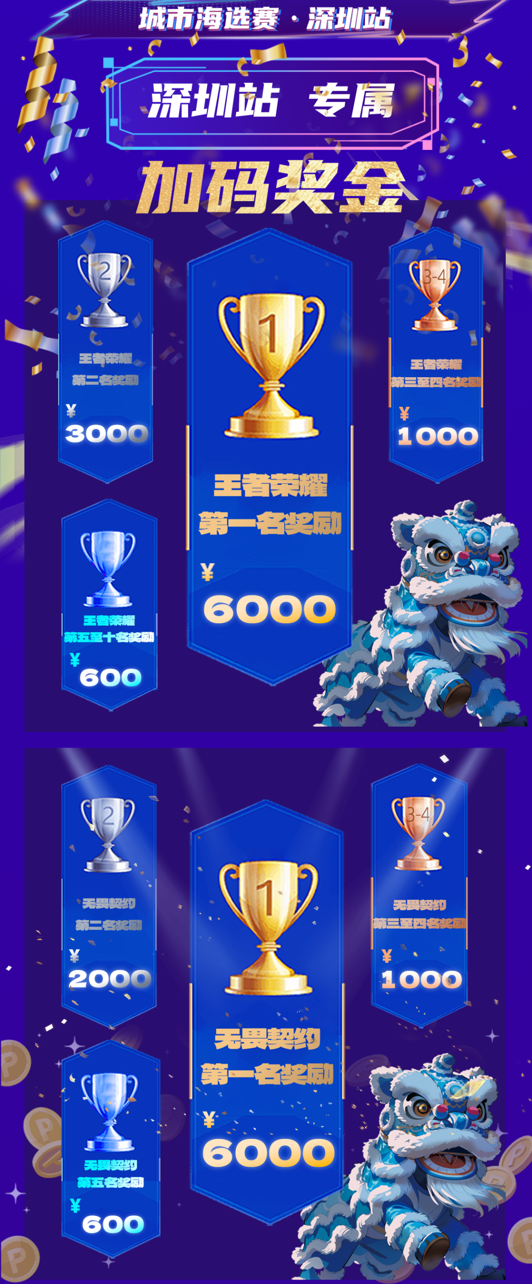 冠军独享6000元现金大奖