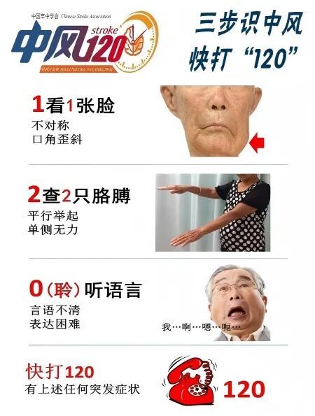 中国卒中学会发布了适合中国国情的卒中快速识别和即刻行动宣教工具(如图)。