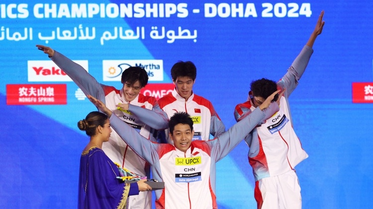 北京时间2月12日,2024多哈世锦赛进入游泳单项争夺,潘展乐、季新杰、张展硕、王浩宇四人在男子4X100米自由泳接力决赛中以3分11秒08的成绩获得金牌。