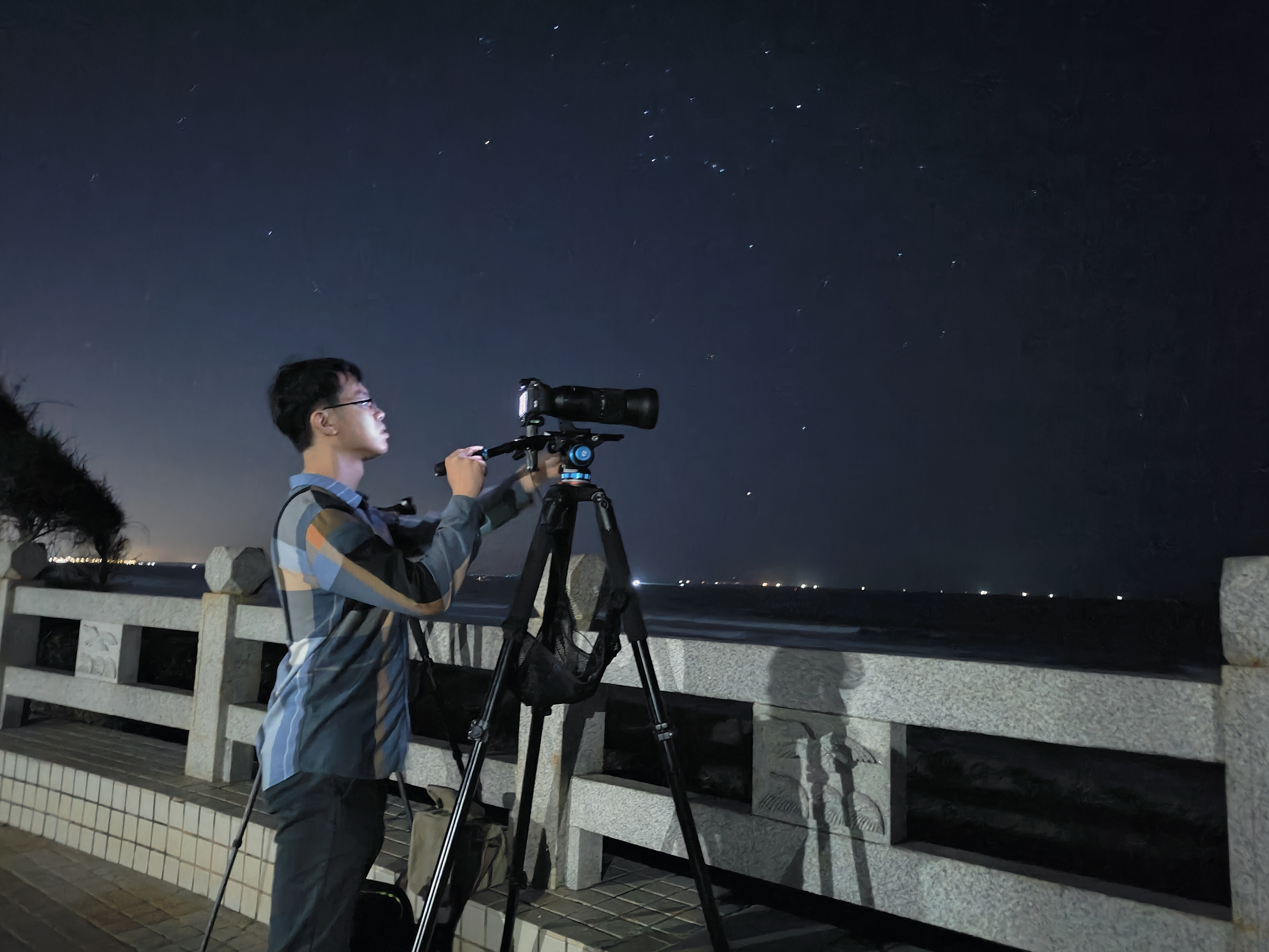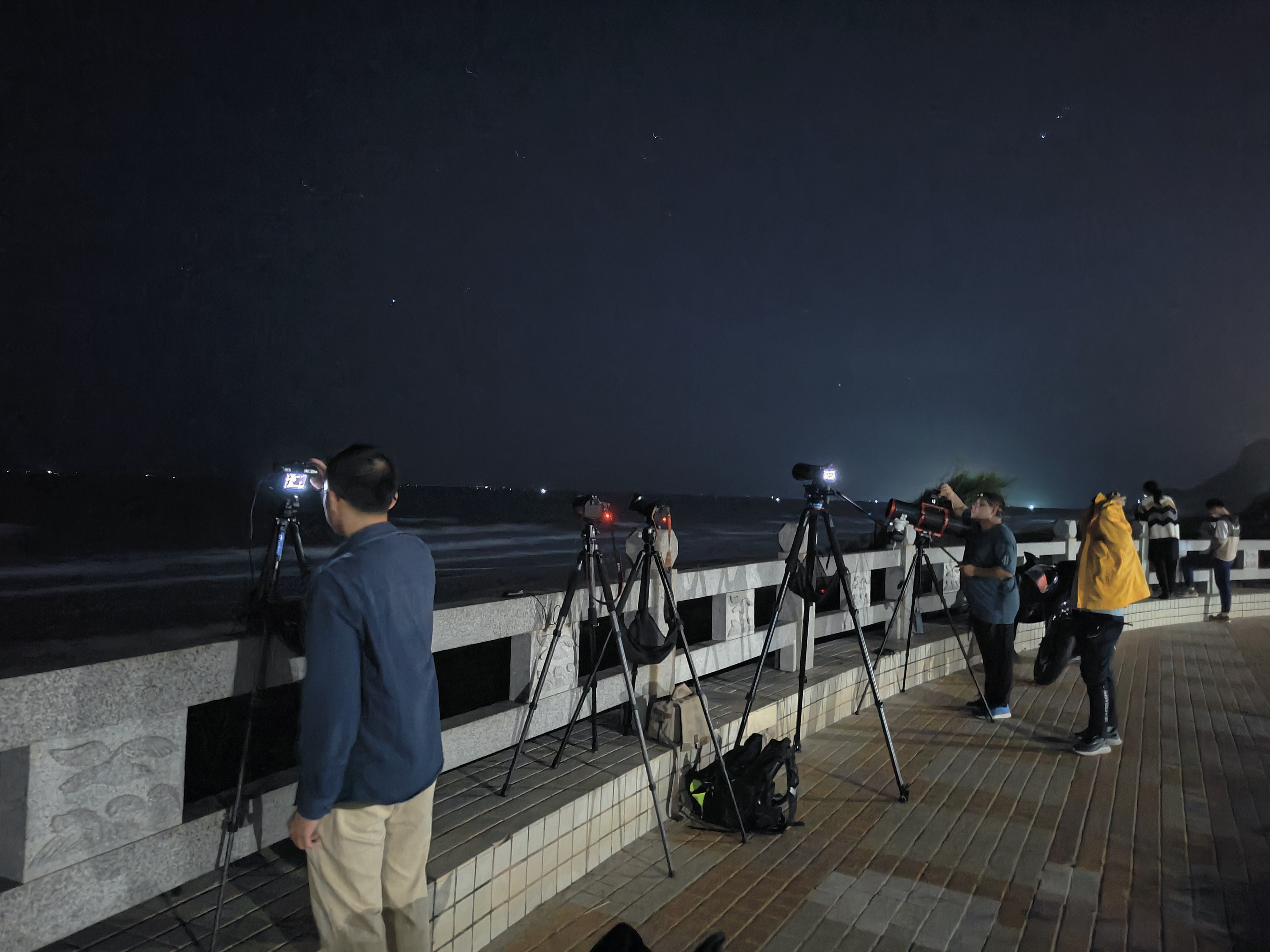 提前1个多小时来到茂名电白海边架好设备