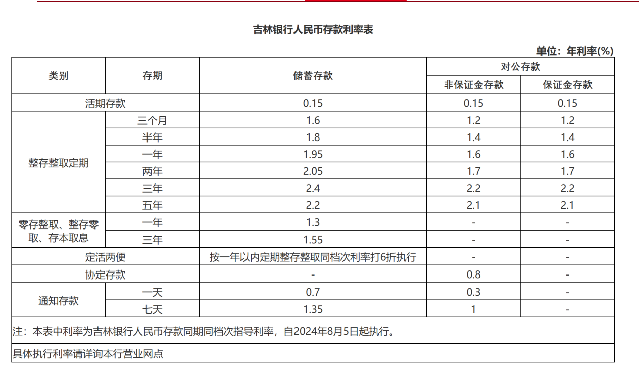 此外,部分银行3年期和5年期定存利率持平,如苏州银行、南京银行3年期和5年期定存利率均为1.95%。部分银行还出现利率倒挂,如齐鲁银行3年期个人定存利率为1.9%,5年期为1.85%;吉林银行3年期定期储蓄存款利率为2.4%,5年期为2.2%。