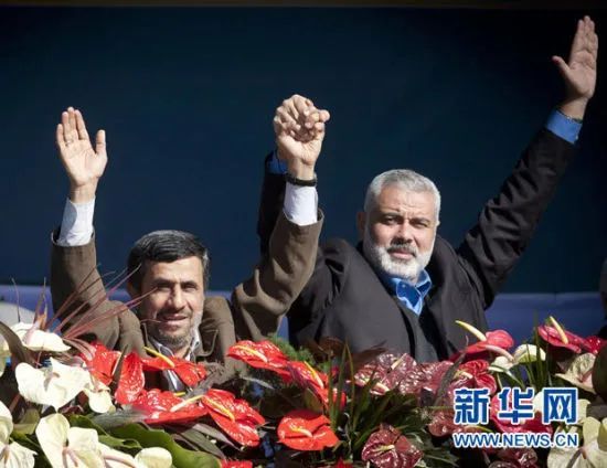 2012年哈尼亚(图右)参加在伊朗德黑兰举行的纪念伊斯兰革命33周年活动。新华网资料图