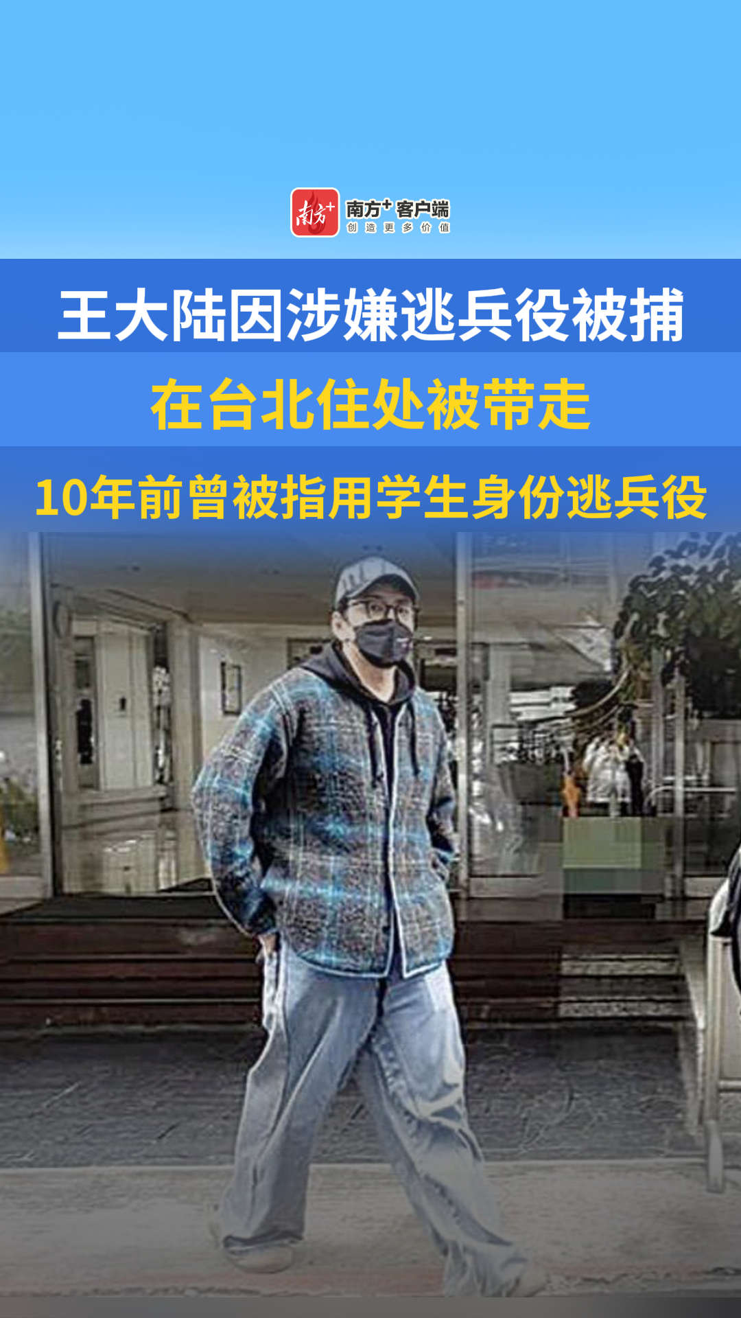 王大陆因涉嫌逃兵役被捕,在台北住处被带走,10年前曾被指用学生身份逃兵役