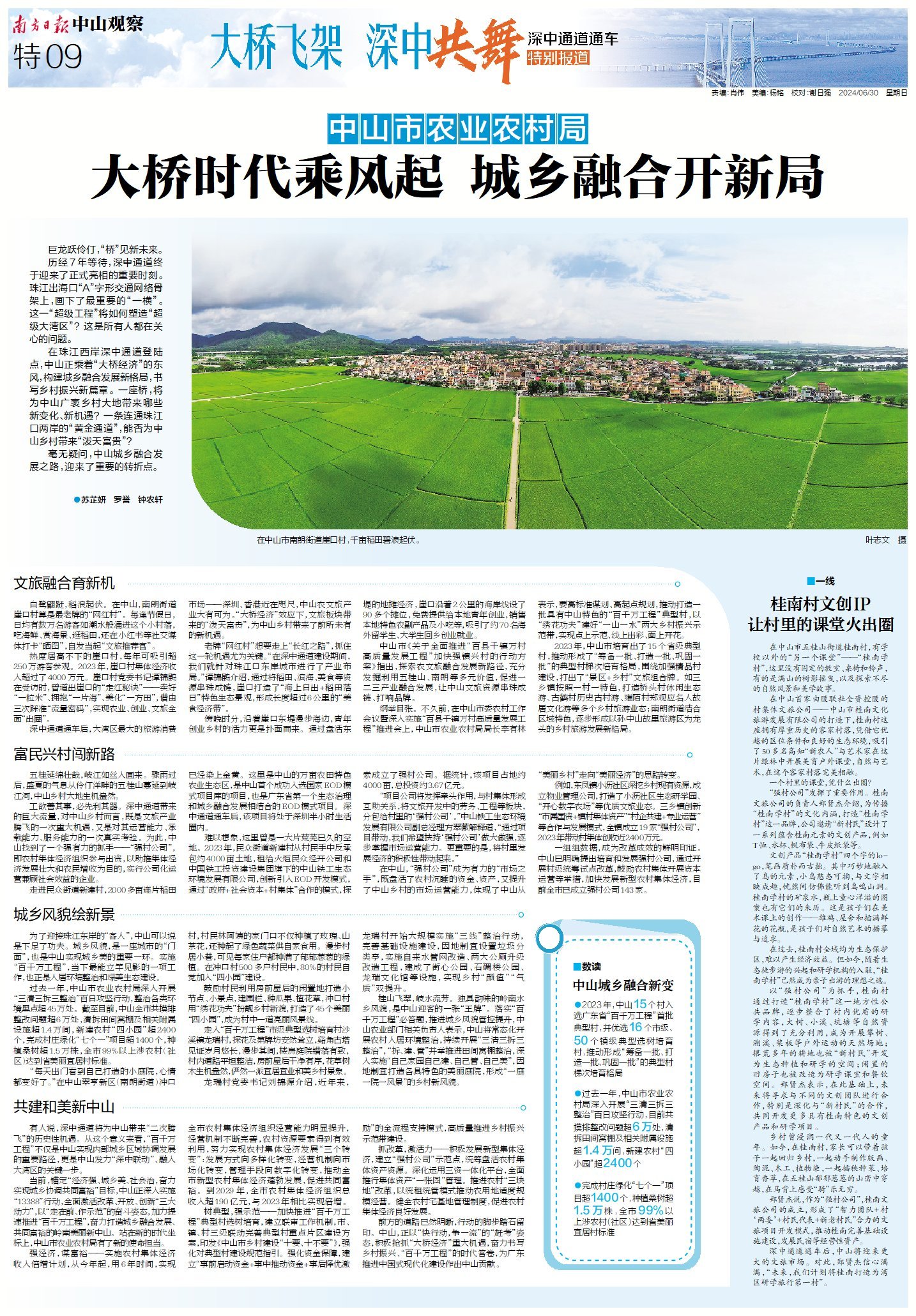 在珠江西岸深中通道登陆点,中山正乘着“大桥经济”的风,构建城乡融合发展新格局,书写乡村振兴新篇章。一座桥,将为中山广袤乡村大地带来哪些新变化、新机遇?一条连通珠江口两岸的“黄金通道”,能否为中山乡村带来“泼天富贵”?