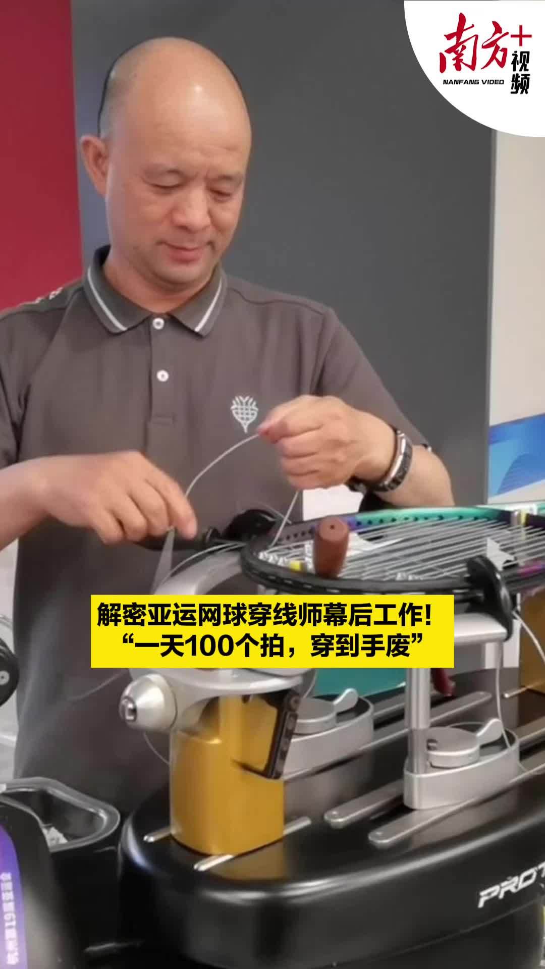 解密亚运网球穿线师幕后工作! “一天100个拍,穿到手废”