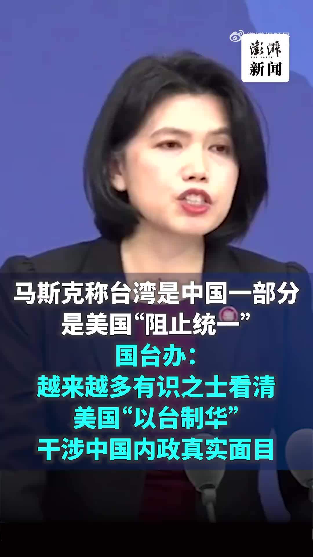 马斯克称台湾是中国一部分,是美国“阻止统一”,国台办回应