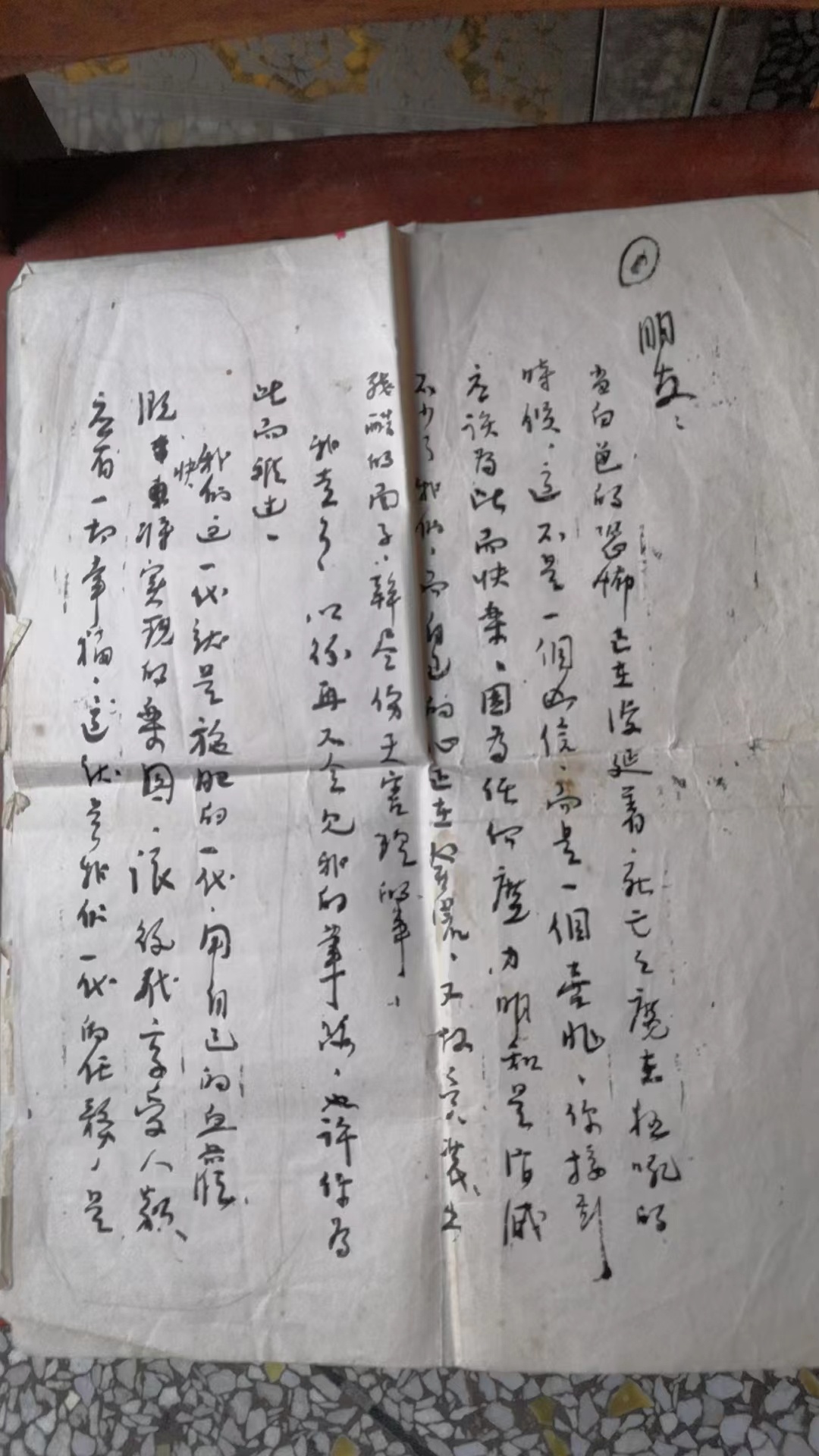 李卡烈士家属展示李卡留存的遗书(局部)
