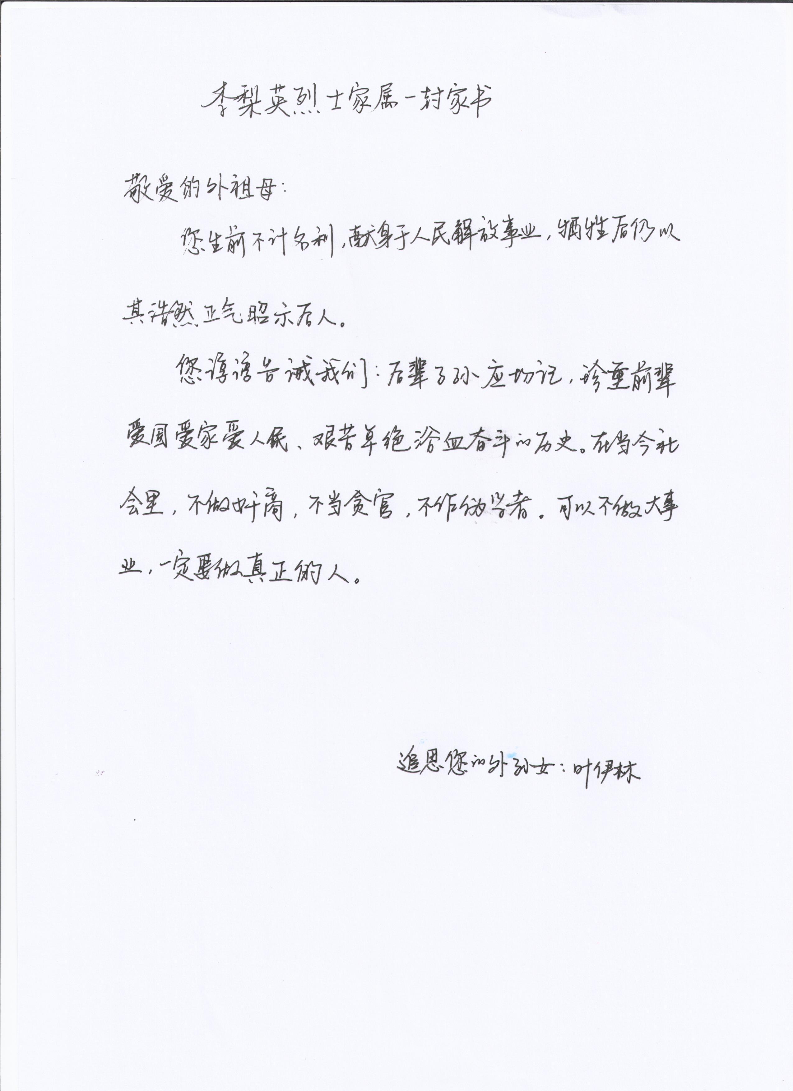 多位烈属给逝去的烈士亲人写下了家书。
