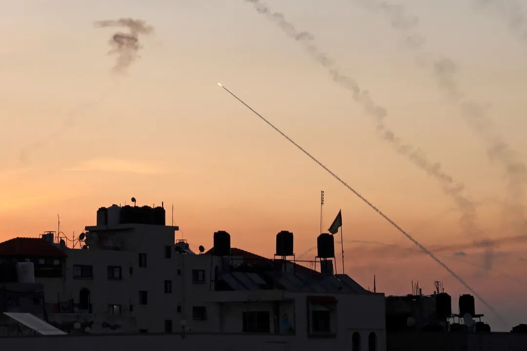 当地时间7日,火箭弹从加沙城向以色列发射 图源:CNN