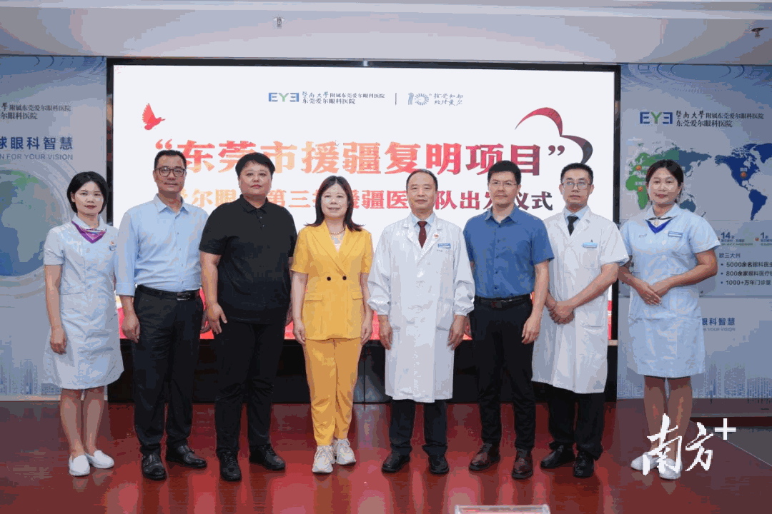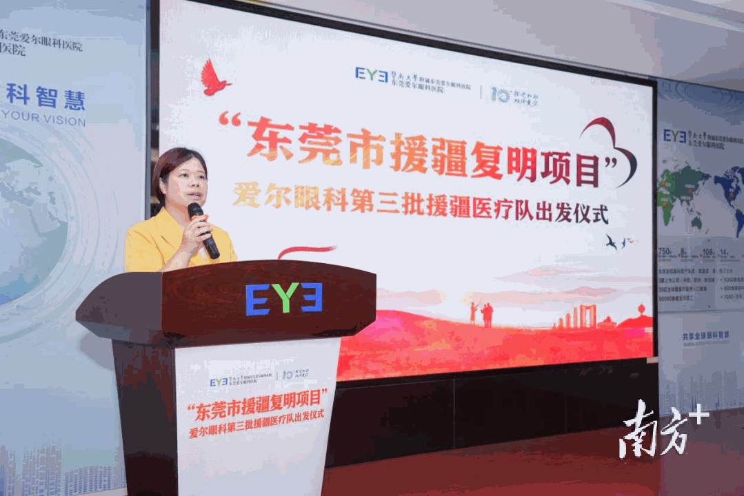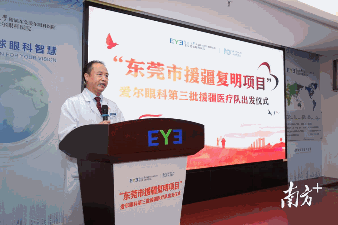 8月23日,“东莞市援疆复明项目”第三批援疆医疗团队出发仪式在东莞爱尔眼科医院举行。医院派出由2名医生、2名护士组成的援疆医疗队,计划为三师图木舒克市200名白内障患者实施白内障复明手术。