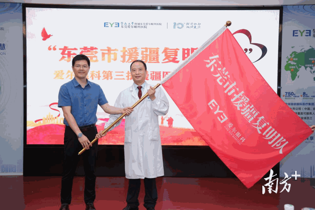 活动现场,东莞市卫生健康局医政医管科二级主任科员李旭棋为刘斐授项目队旗。接过队旗后,刘斐表示,将以高标准、高质量完成此次对口援疆工作。有前面两次援疆复明行的经验和基础,医疗队这次还会带上一台超声乳化机和六套超声乳化手柄,整个手术流程更加流畅,提升医疗水平。