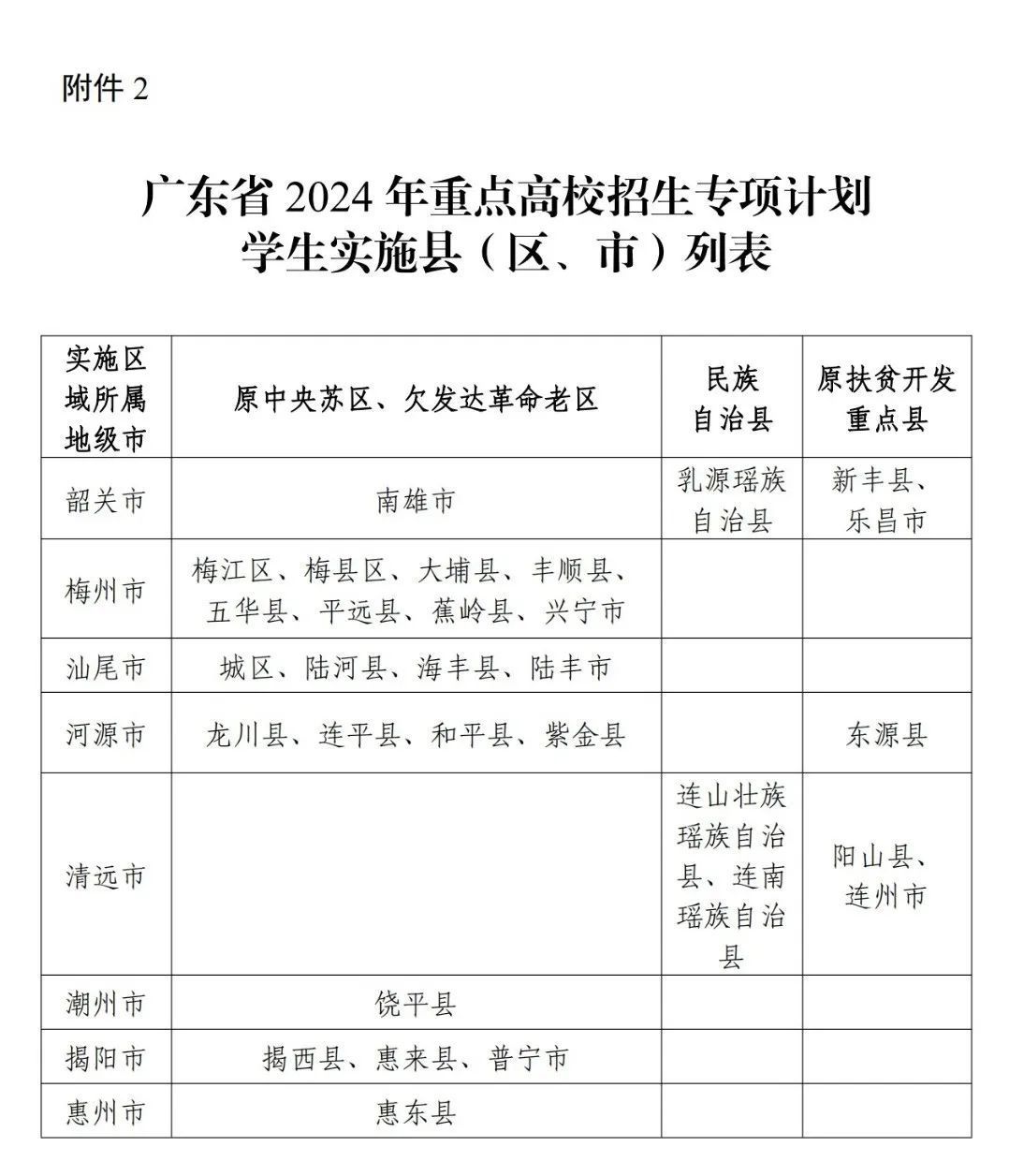 今年重点高校招生专项计划的范围为原中央苏区、欠发达革命老区和民族自治县、原扶贫开发重点县,共有30个县(市、区)。