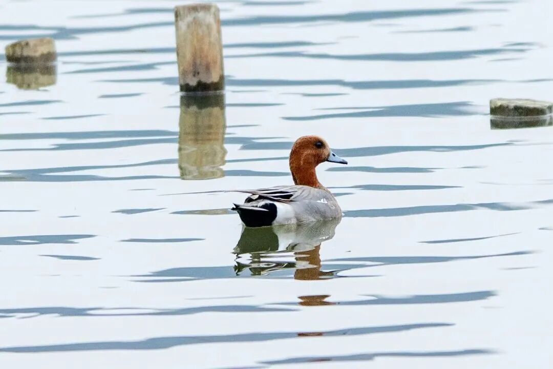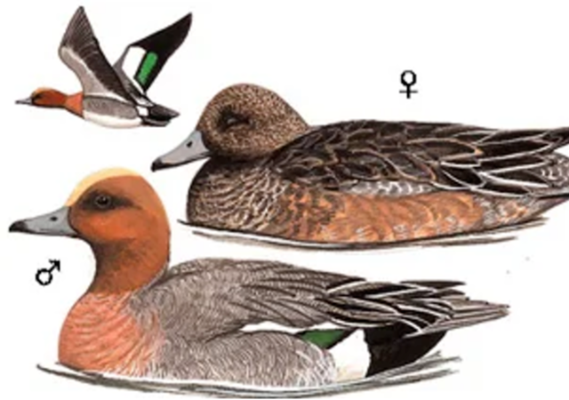 赤颈鸭(英文名:Eurasian Wigeon,学名:Mareca penelope),是雁形目鸭科Mareca的鸟类,又名赤颈凫、鹅子鸭、红鸭,广泛分布在欧亚大陆。赤颈鸭栖息于淡水湿地,如湖泊、沼泽,常在开阔的水域活动,喜食植物性食物,包括水生植物的根、茎、叶和果实,也会到农田觅食。它成群活动,游泳和潜水能力优秀,飞行快速有力,与多种水鸟混群。