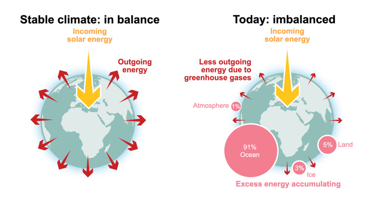 △地球能量平衡与失衡示意图(图片来源:政府间气候变化专门委员会)