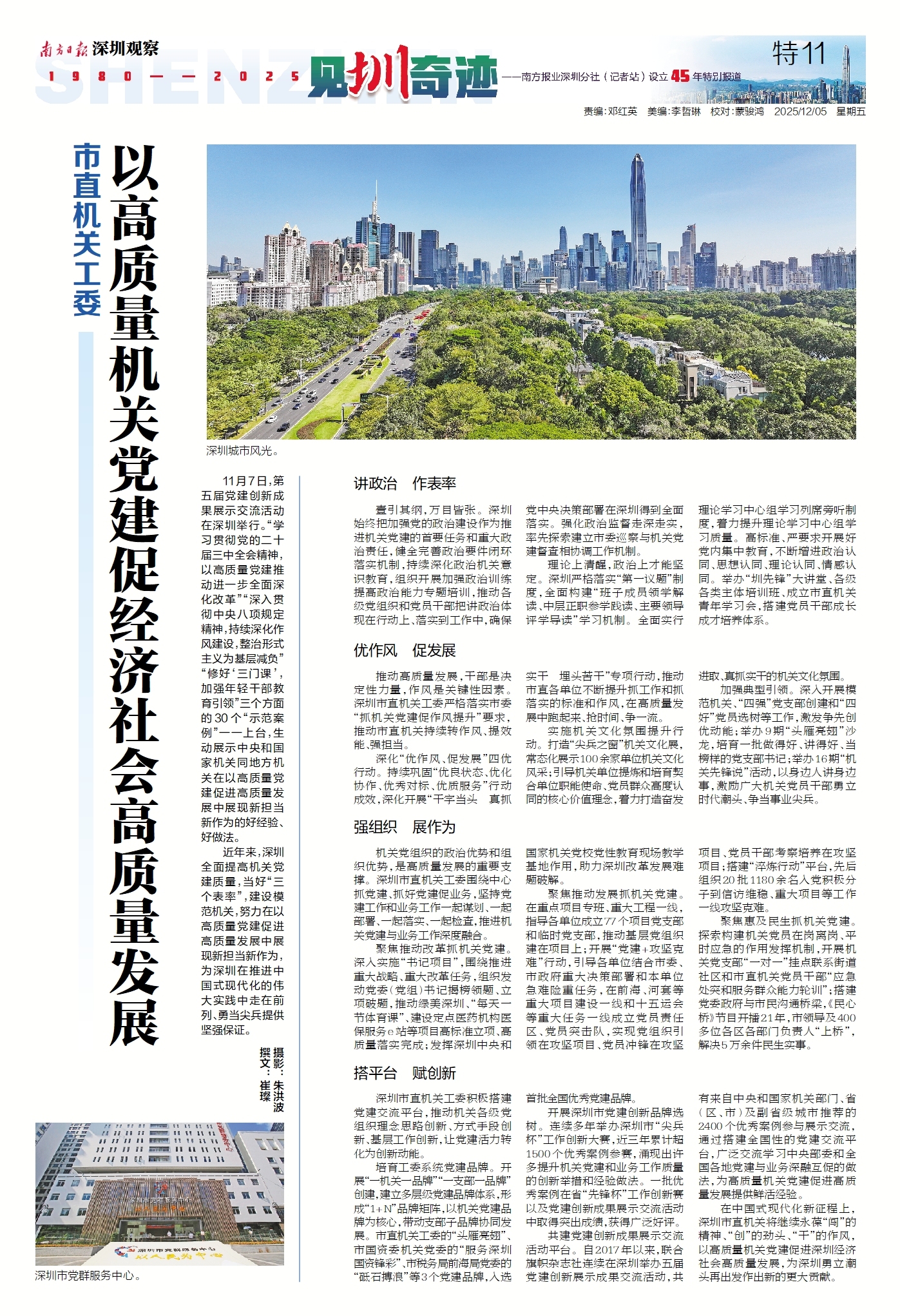 近年来,深圳全面提高机关党建质量,当好“三个表率”,建设模范机关,努力在以高质量党建促进高质量发展中展现新担当新作为,为深圳在推进中国式现代化的伟大实践中走在前列、勇当尖兵提供坚强保证。