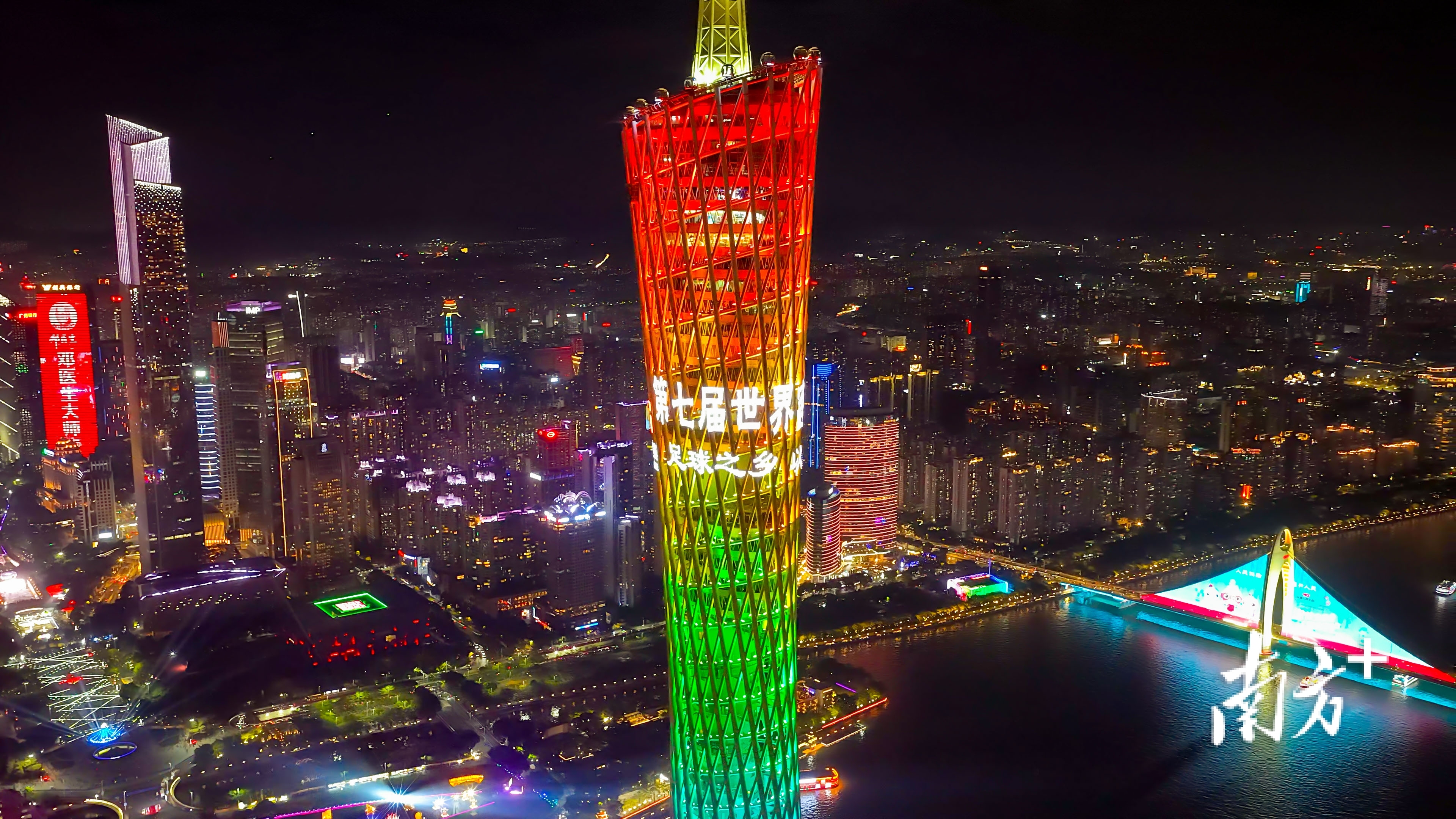 (以球会友叙客情!广州塔点亮梅州专属光影,时长共30秒)