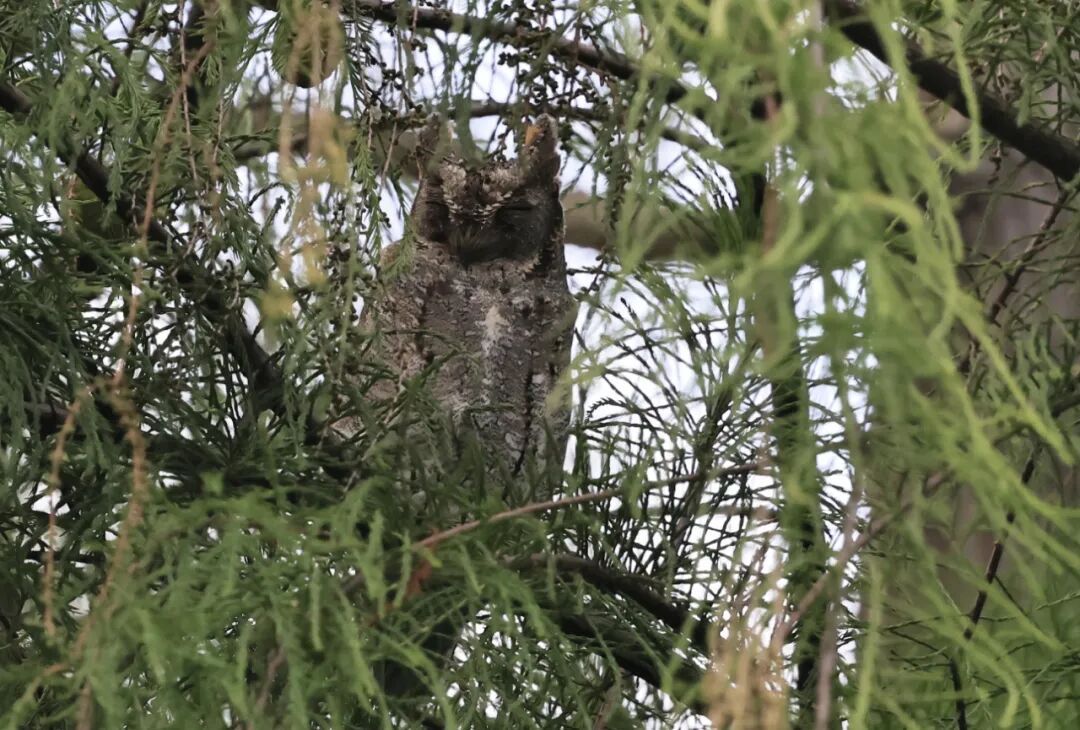 近日,红角鸮现身海珠湖,由青少年观鸟爱好者江玥晴发现。摄影:张陆欣