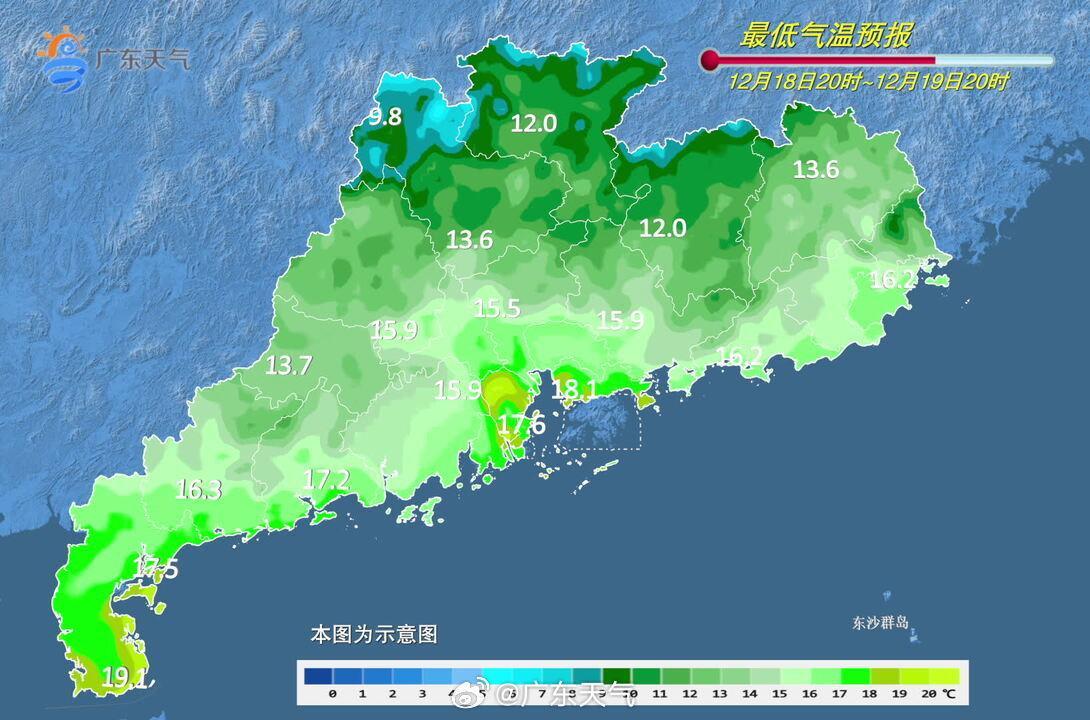 最低气温预报。具体预报为,18日,珠江口到粤东市县晴到多云,其余市县晴间多云。最低气温:粤北市县7-11℃,南部沿海市县15-18℃,其余市县12-14℃。