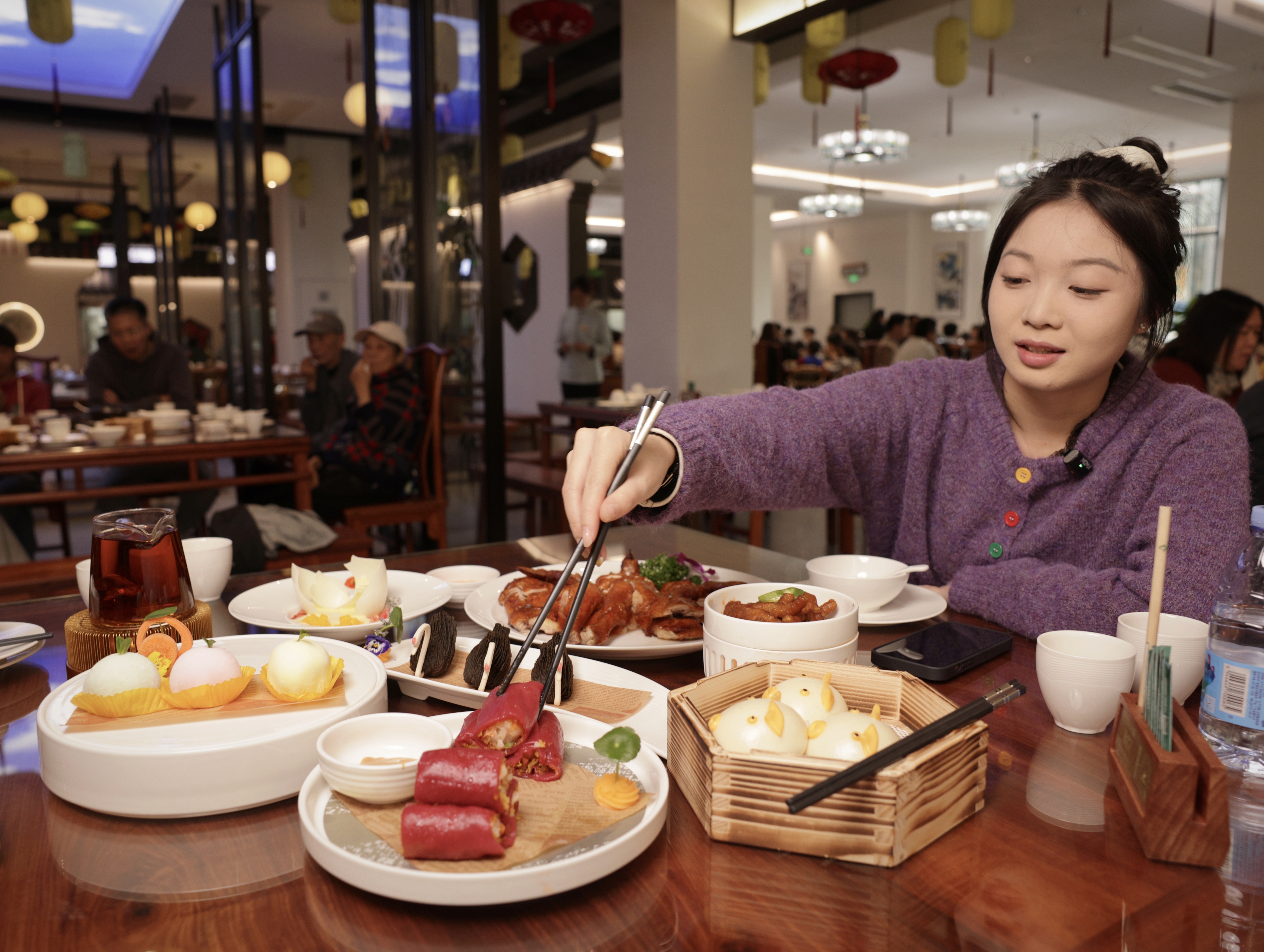 “粤北荟”以徽派水墨江南风为设计灵感,将黛瓦粉墙、雕花窗棂等经典元素与现代生活美学巧妙相融。步入其中,雕梁画栋的雅韵与现代空间的通透感交相辉映,一步一景,营造出时尚雅致的就餐氛围。“餐厅主打广式早茶、粤北及顺德特色美食 ,我们通过呈现粤菜经典味道,结合徽派的设计元素,为客人带来新的度假体验。”森波拉有关负责人介绍道。