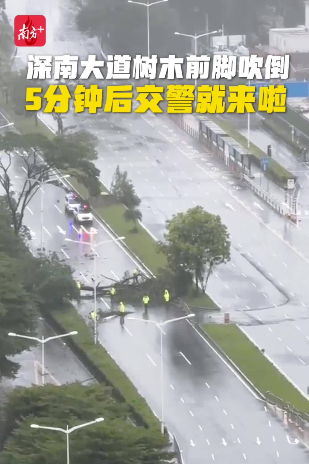 深南大道树木前脚吹倒,深圳交警5分钟赶到清障