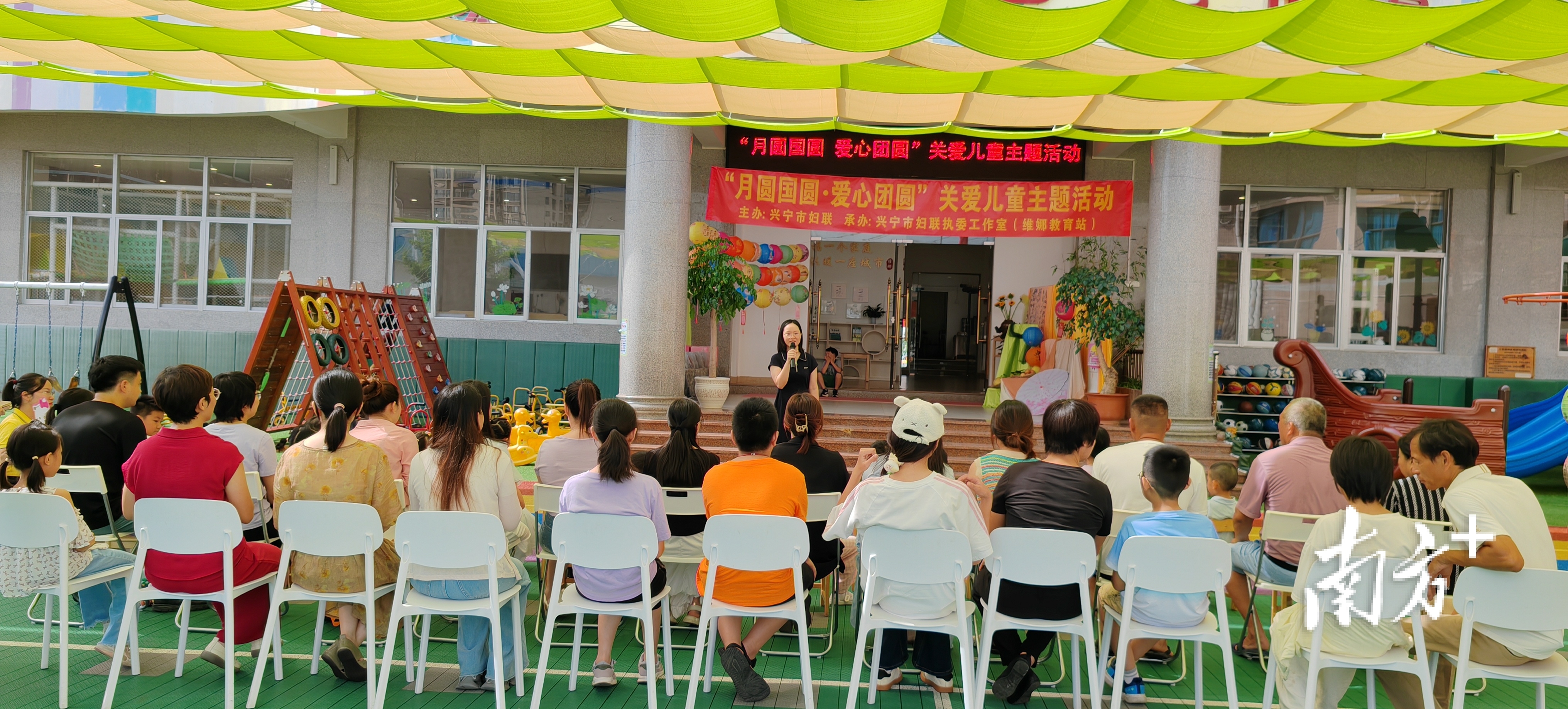 活动在欢乐的暖场小游戏氛围中拉开帷幕。兴宁市妇联相关负责人向所有到场的孩子和家长们表达了节日的诚挚祝福,并对“爱心妈妈”们长期以来的无私奉献表示衷心感谢,鼓励孩子们能在社会关爱下努力学习,茁壮成长。