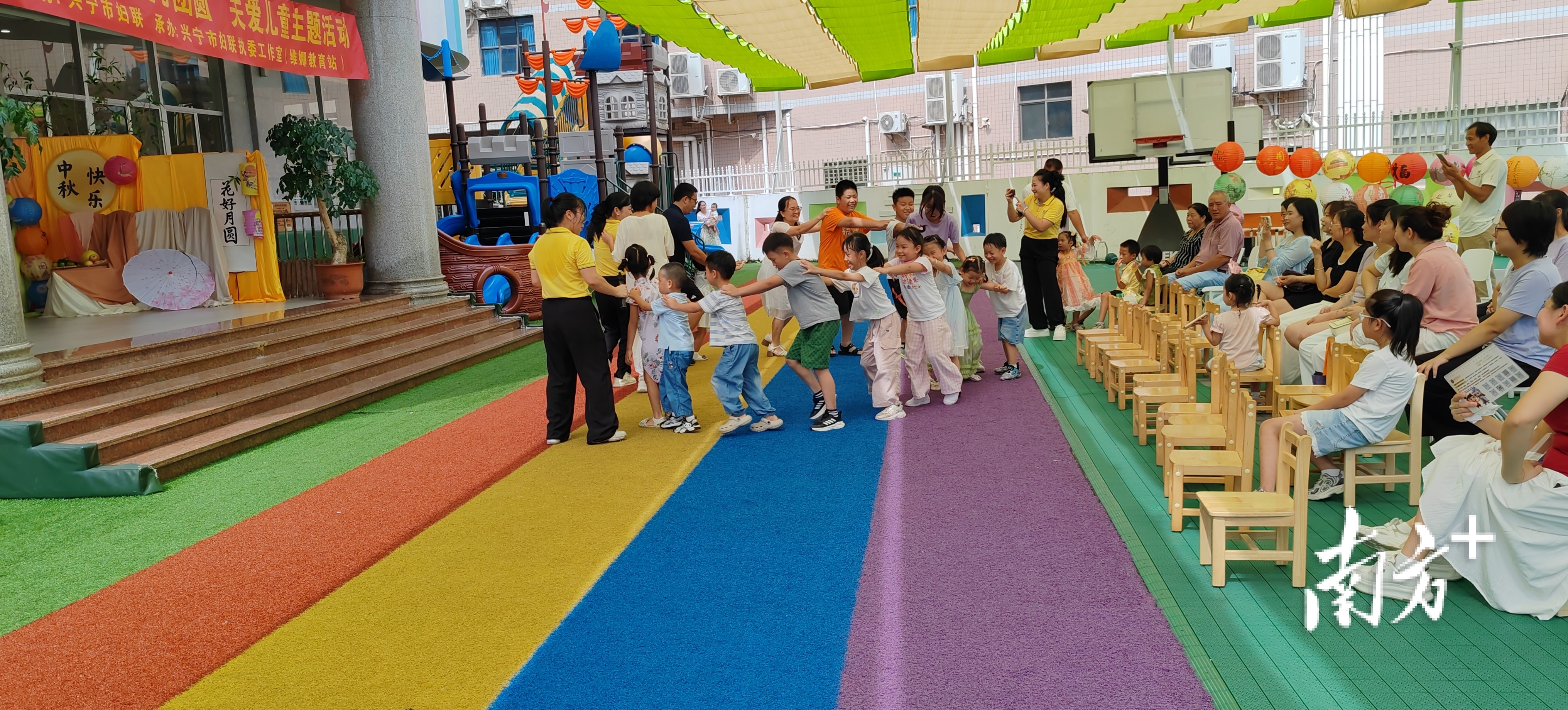 在“欢乐时光才艺秀”和趣味小游戏环节,孩子们纷纷登台展示才艺,现场掌声不断。大家共同参与的“月下捉鳅乐”“团圆抢凳赛”等游戏,巧妙融入了中秋与国庆的节日元素,将现场气氛推向高潮,欢声笑语中增进了彼此的情感。