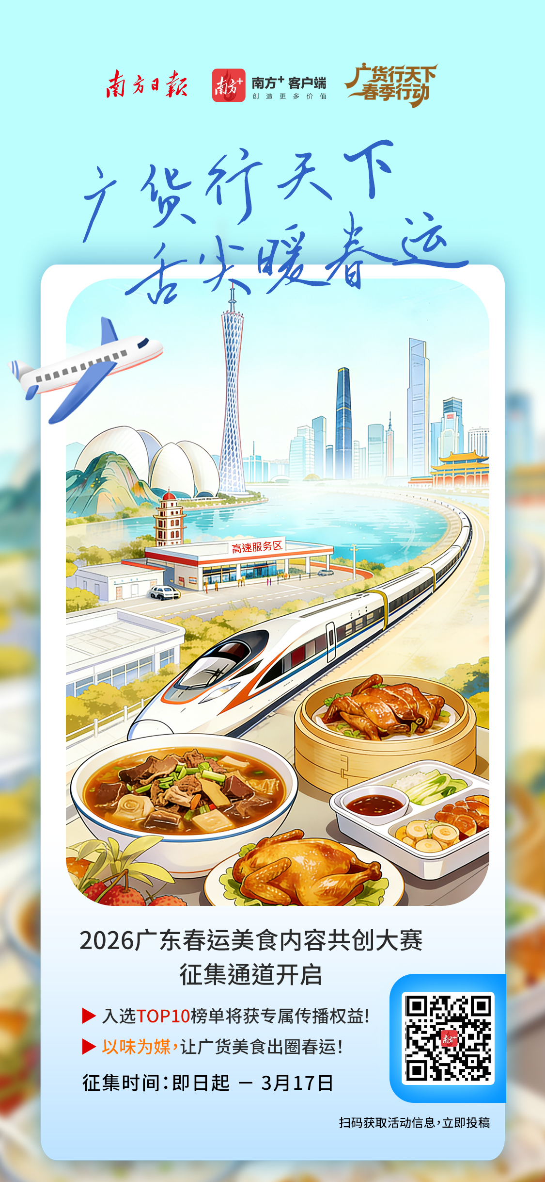 本次征集无门槛、零限制,只要视频内容紧扣“春运+岭南美食”主题,无论是经营主体的美味推荐,还是广大网友旅途偶遇的特色广货、亲手制作的粤式年菜,还是与美食相关的团圆故事,都可投稿参与。