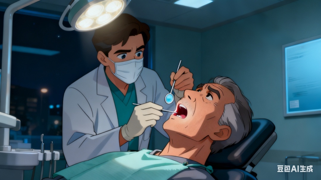 一位五十多岁的中年男子捂着半边脸颊,满头冷汗,声音颤抖地对医生说:“大夫,我牙疼得要命!像有电钻在脑子里打转,止痛药吃了也不管用!”