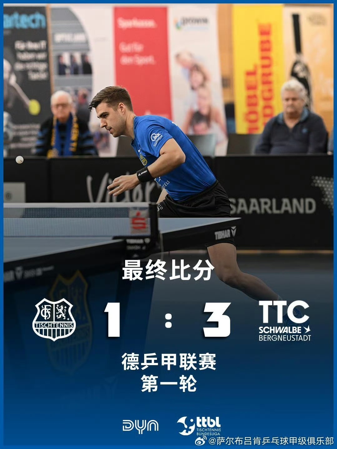 北京时间8月31日晚,在德国乒乓球甲级联赛第一轮比赛中,奥运冠军、中国名将樊振东代表萨尔布吕肯上演德甲赛场首秀。结果樊振东在自己出战的两场单打比赛中均告失利,萨尔布吕肯也在新赛季首轮比赛中总比分1比3不敌贝格诺伊施塔特。
