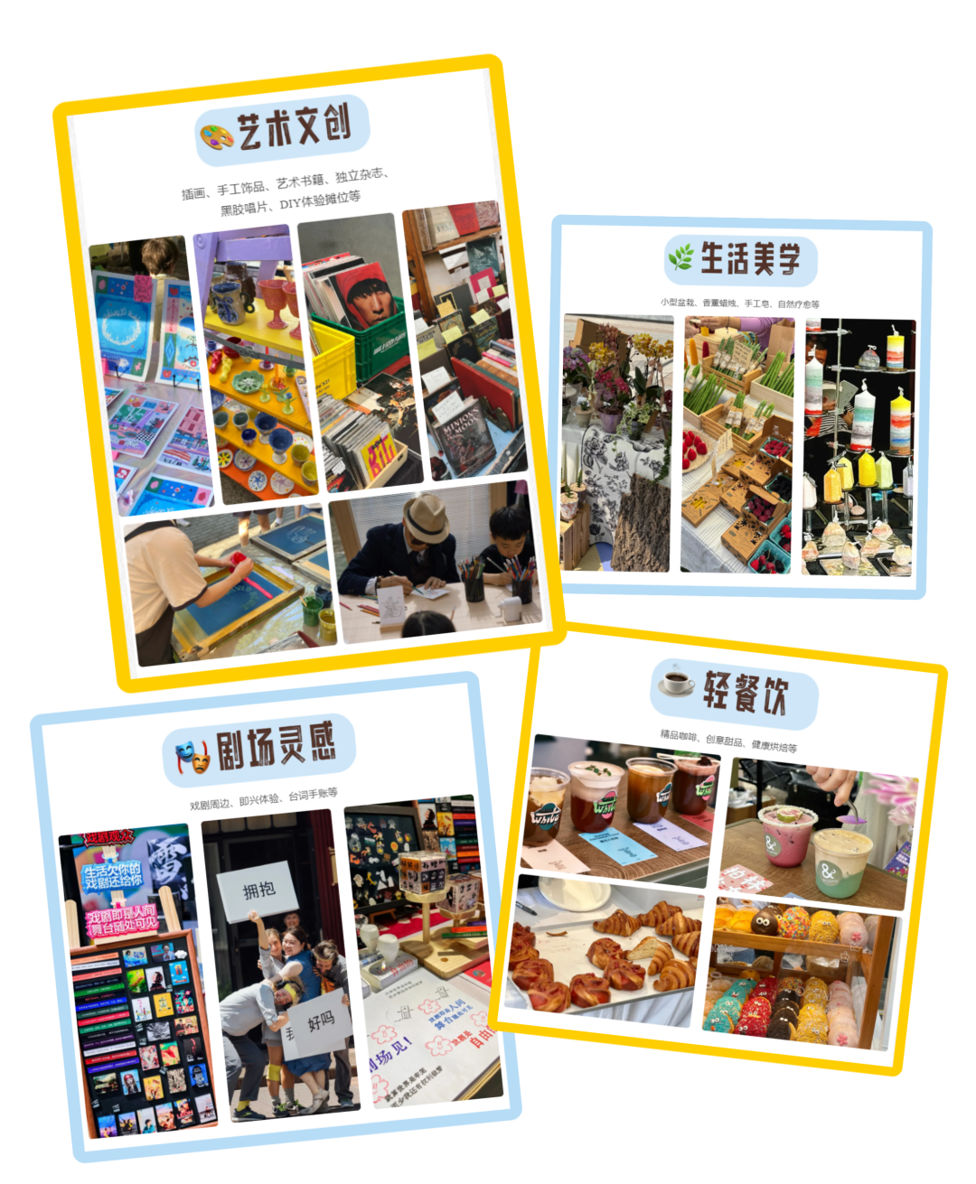 艺术季开幕当天,主办方会在剧院开放为期两天的“假日艺术市集”,涵盖艺术文创、生活美学、剧场灵感等有趣摊位,超chill的树下音乐快闪、戏剧快闪……用艺术填满你的周末!