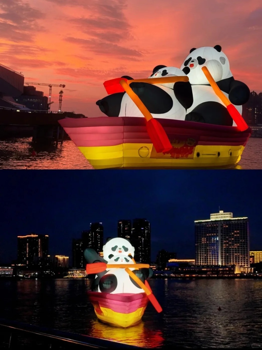 活动以香港特区大熊猫安安、可可为主角,集合众多明星大熊猫IP,珠江边的安安&可可巨型熊猫气模出片又治愈。
