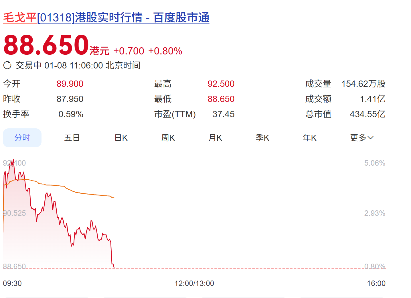 据悉,公告次日股价最高涨超8%,收盘报87.95港元,市值达431亿港元。