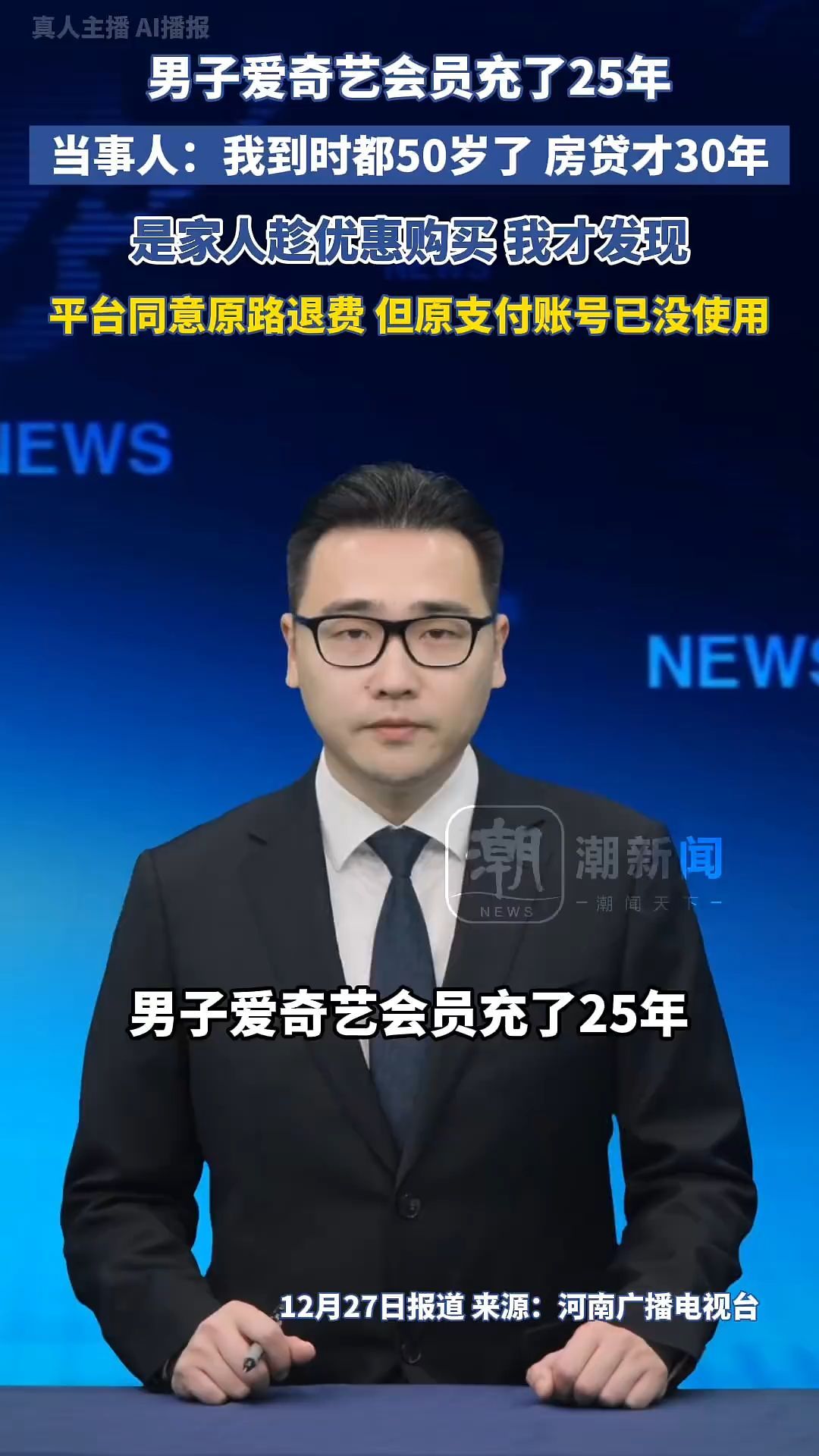 男子爱奇艺会员充了25年遇退费难:“会员25年,我都50多岁了,有必要吗?”爱奇艺客服回应