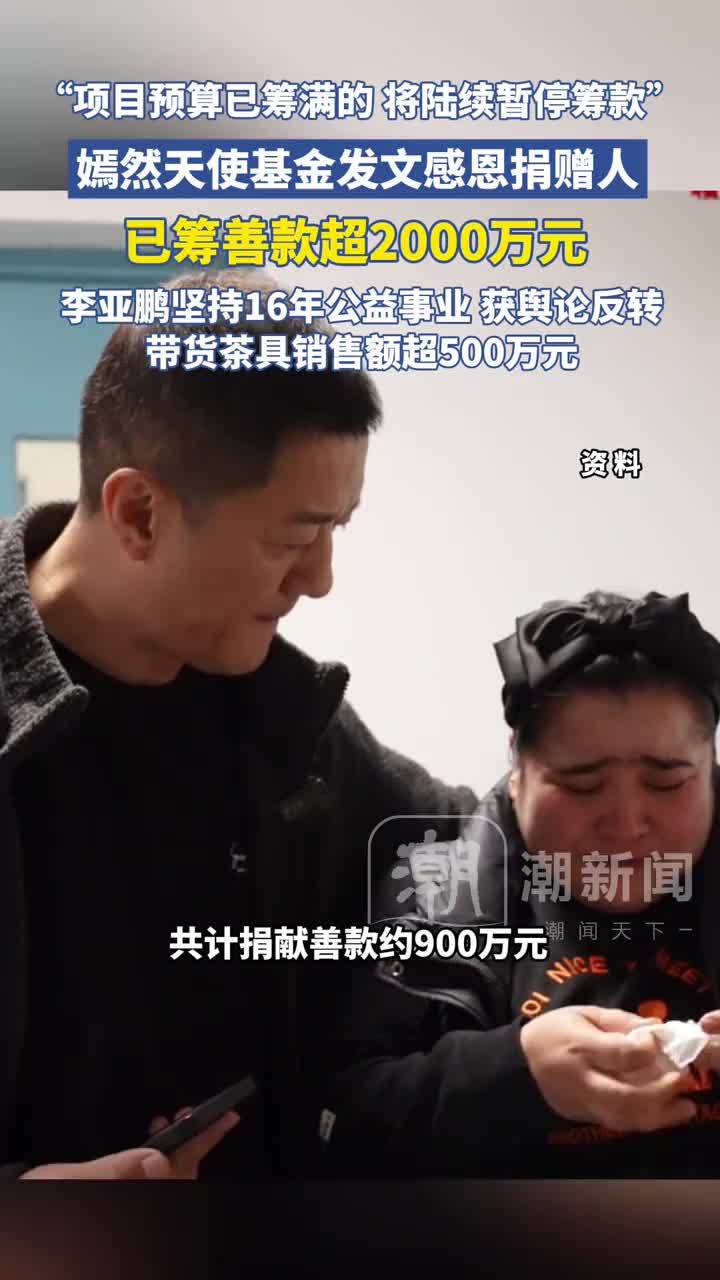 1月20日,嫣然天使基金发文称,近期收到了大家的大量捐款。“我们将珍惜并妥善将大家的善款持续用于唇腭裂患者的医疗救助项目。按相关制度法规,项目预算已筹满的,我们将陆续暂停筹款项目,待完成备案补正后再开放捐赠渠道。”详情>>