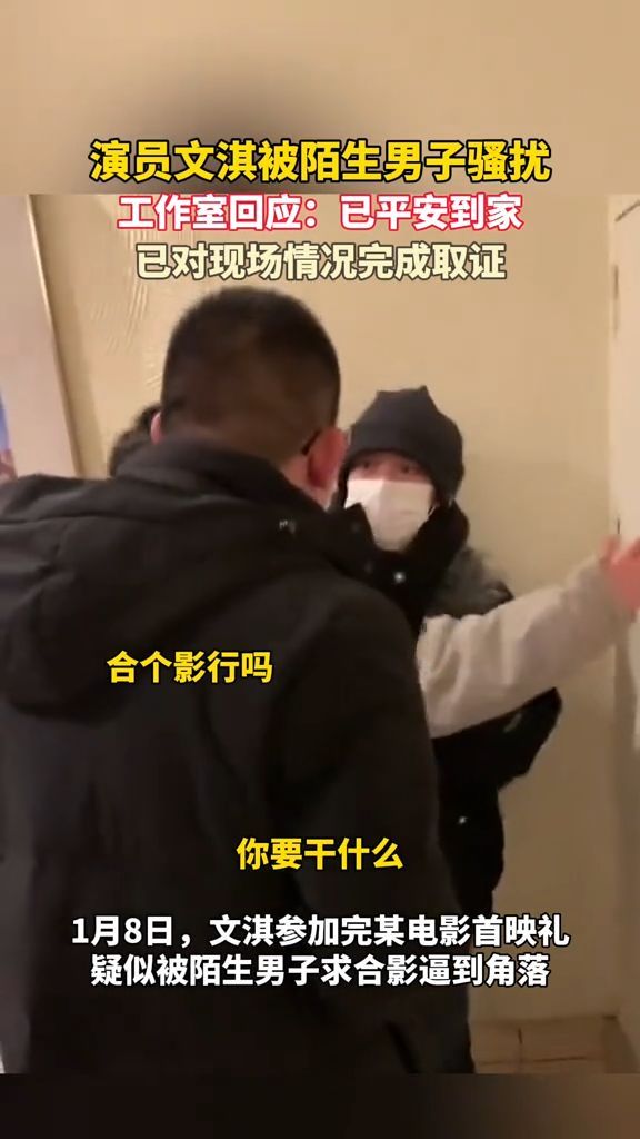 1月8日晚,有网友拍到演员文淇参加完《马腾你别走》首映礼后,疑似被陌生男子求合影逼到角落。1月9日,文淇工作室回应:文淇在出席电影首映时遭陌生男子上前围堵,更有超越合理边界近身强行接触的情况。已对现场情况完成取证,并保留通过法律途径追究侵权者责任的权利,我们绝不姑息任何侵犯艺人合法权益的行为。详情>>