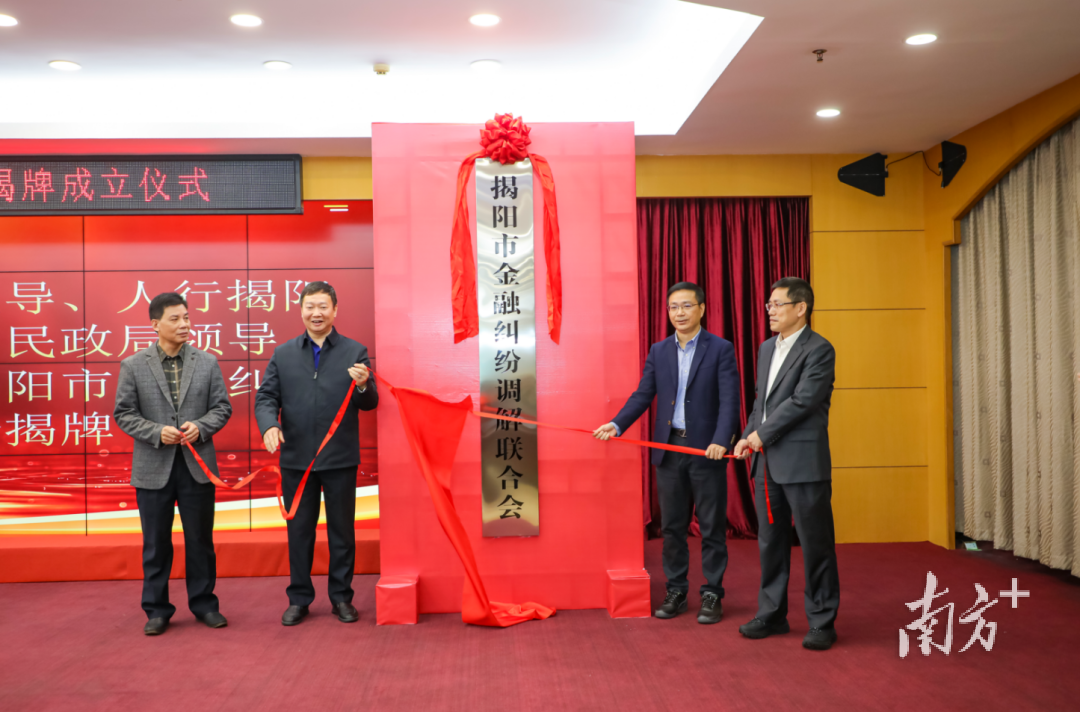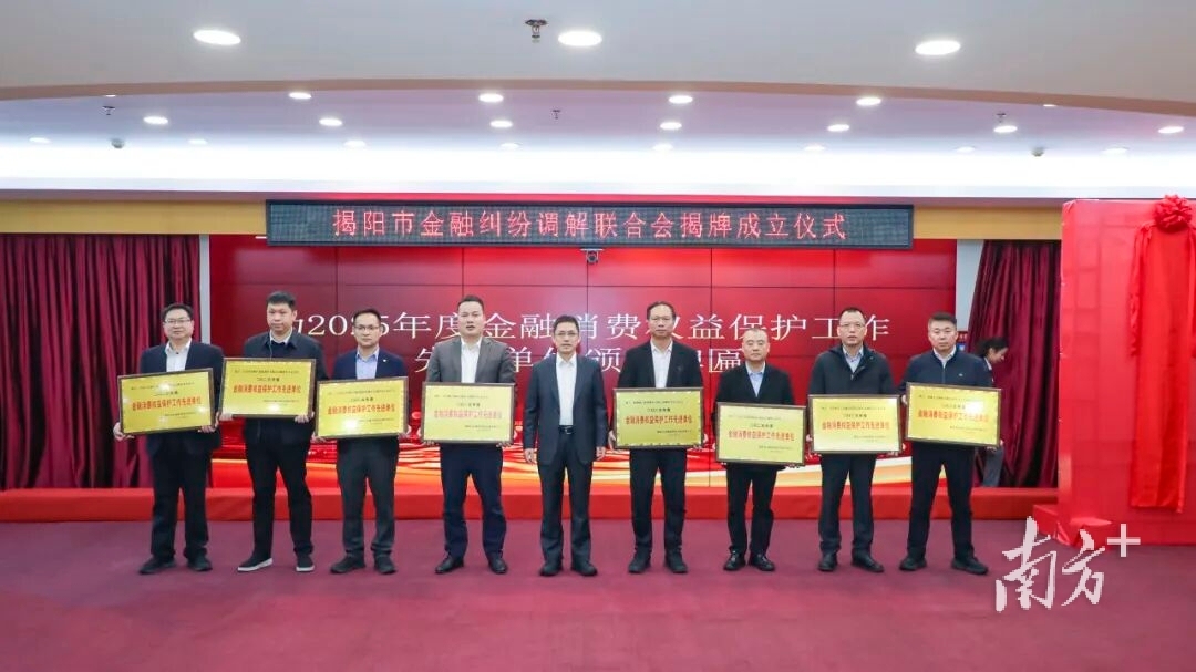 3月5日,揭阳市金融消费权益保护联合会举办第三届第二次会员大会暨揭阳市金融纠纷调解联合会揭牌成立仪式。国家金融监督管理总局揭阳监管分局党委书记、局长刘宁东,党委委员、副局长邓丽,中国人民银行揭阳市分行党委委员、副行长陈鸿生,联合会会长、交通银行揭阳分行行长李益平等参加会议。