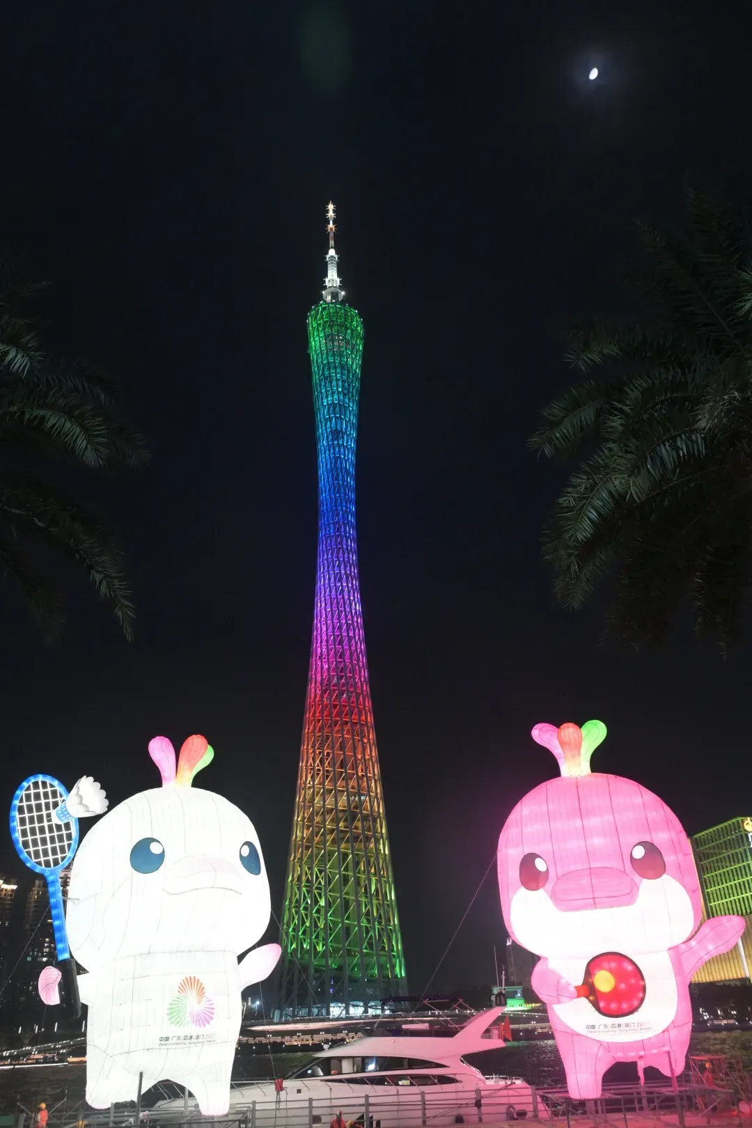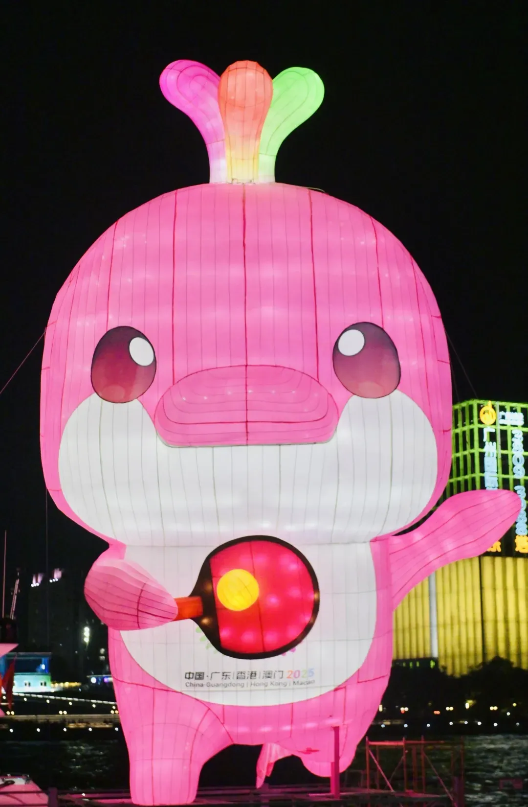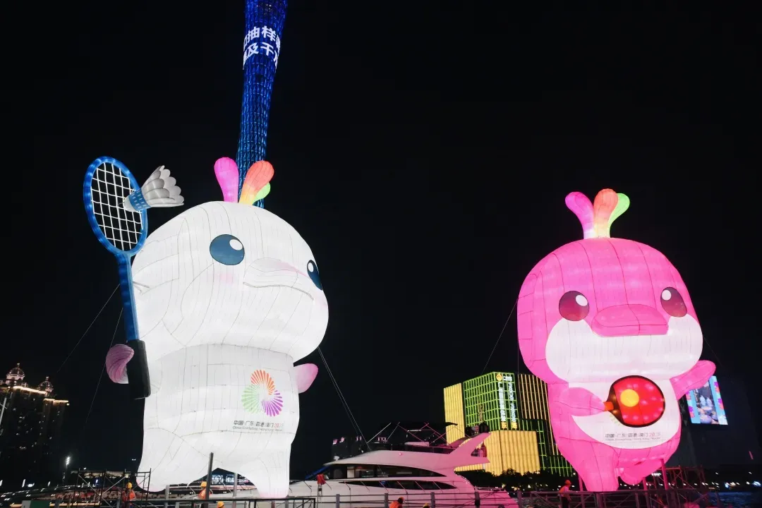 这一珠江上大型吉祥物漂浮装置,作为十五运会和残特奥会广州赛区景观与氛围营造的重点项目,以独特的创意构思与岭南文化表达,为全运会的到来注入热烈氛围,也为广州的城市夜空增添亮丽风景。