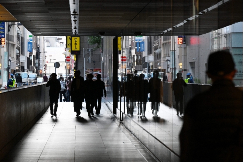 行人经过日本东京一家关闭的店铺。新华社发
