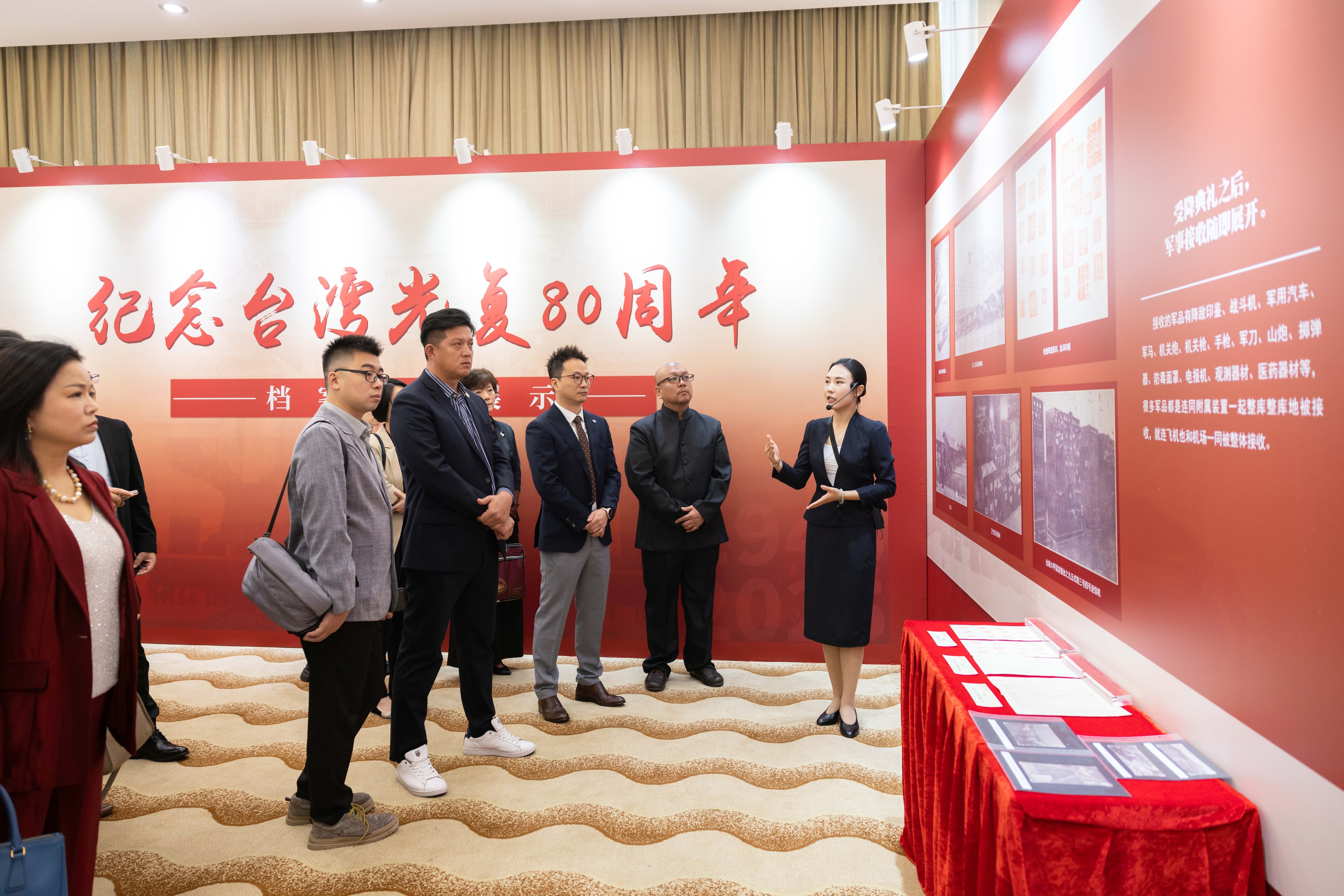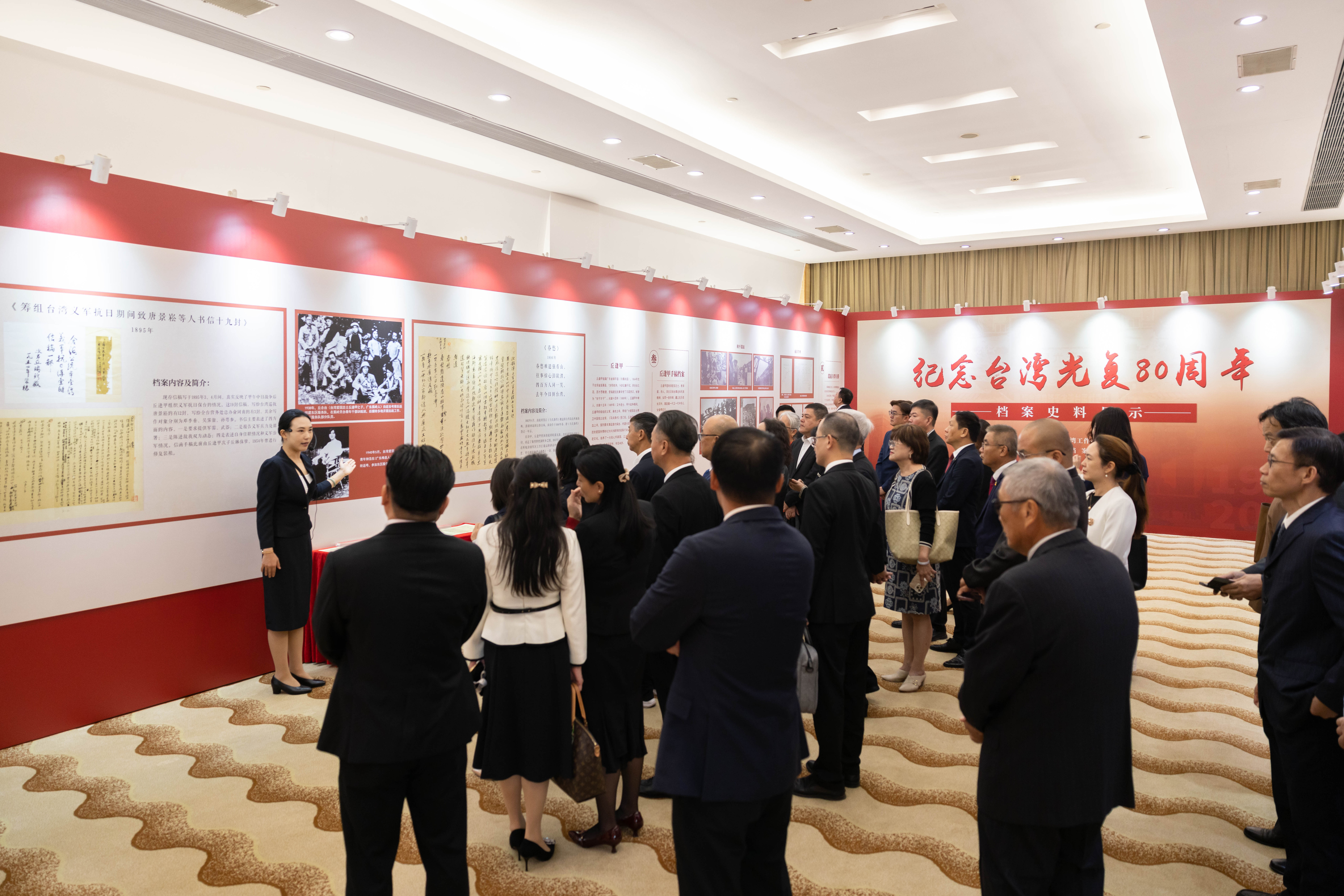 座谈会后,与会代表参观了“纪念台湾光复80周年档案史料展”。本次展览展出了包括“中国战区台湾省受降仪式”照片、丘逢甲手稿档案等在内的珍贵文物,展现了台湾人民抗击侵略的艰辛历程以及台湾重归中国版图的重大历史时刻。